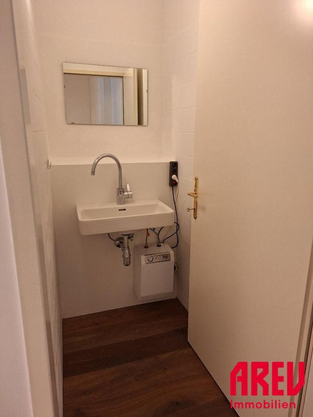 Großzügige Geschäftsfläche mit einem separaten Waschraum und WC, Abstellraum.