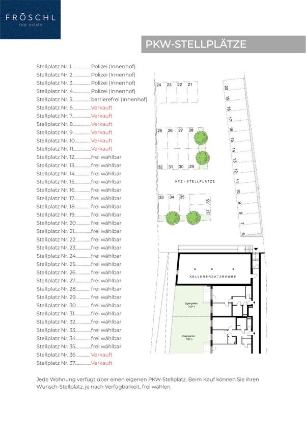 - Stellplatzmiete: € 55,00 (inkl. BK und Ust) pro Monat pro PKW-Stellplatz im Freien