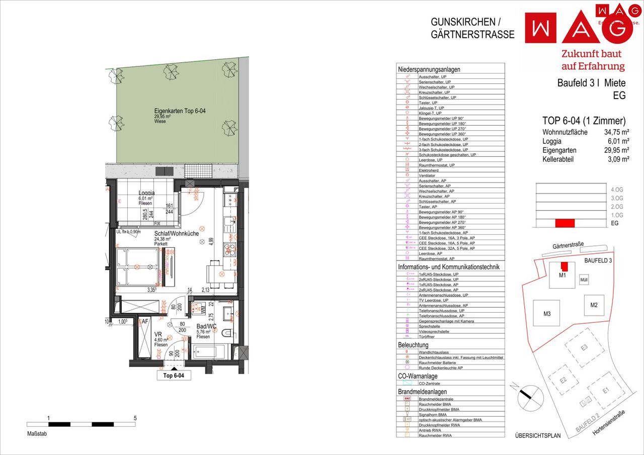 Wie bei allen WAG-Neubauprojekten steht der Einsatz energieeffizienter und umweltschonender Technologien im Vordergrund: Die Geschoßdecken verfügen über eine integrierte Deckenheizung, die in den Wintermonaten nicht nur wohlige Wärme erzeugt, sondern auch im Sommer zur sanften Temperierung eingesetzt werden kann. Das Flachdach wird begrünt und mit einer Photovoltaikanlage ausgestattet – das sorgt für ein besseres Mikroklima sowie ein Plus an Nachhaltigkeit.