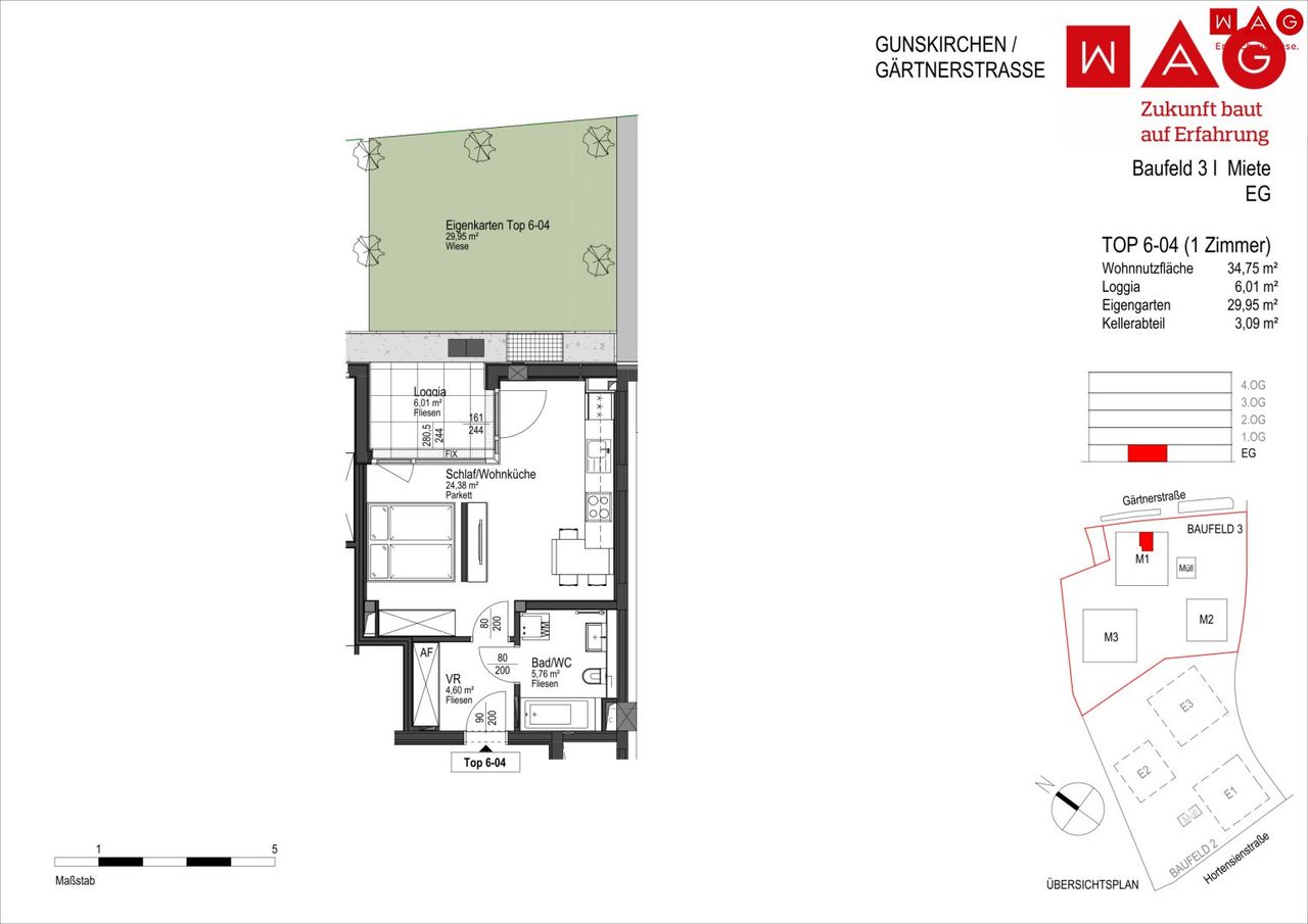 Wohnung Top 4, EG, mit Loggia und Garten: