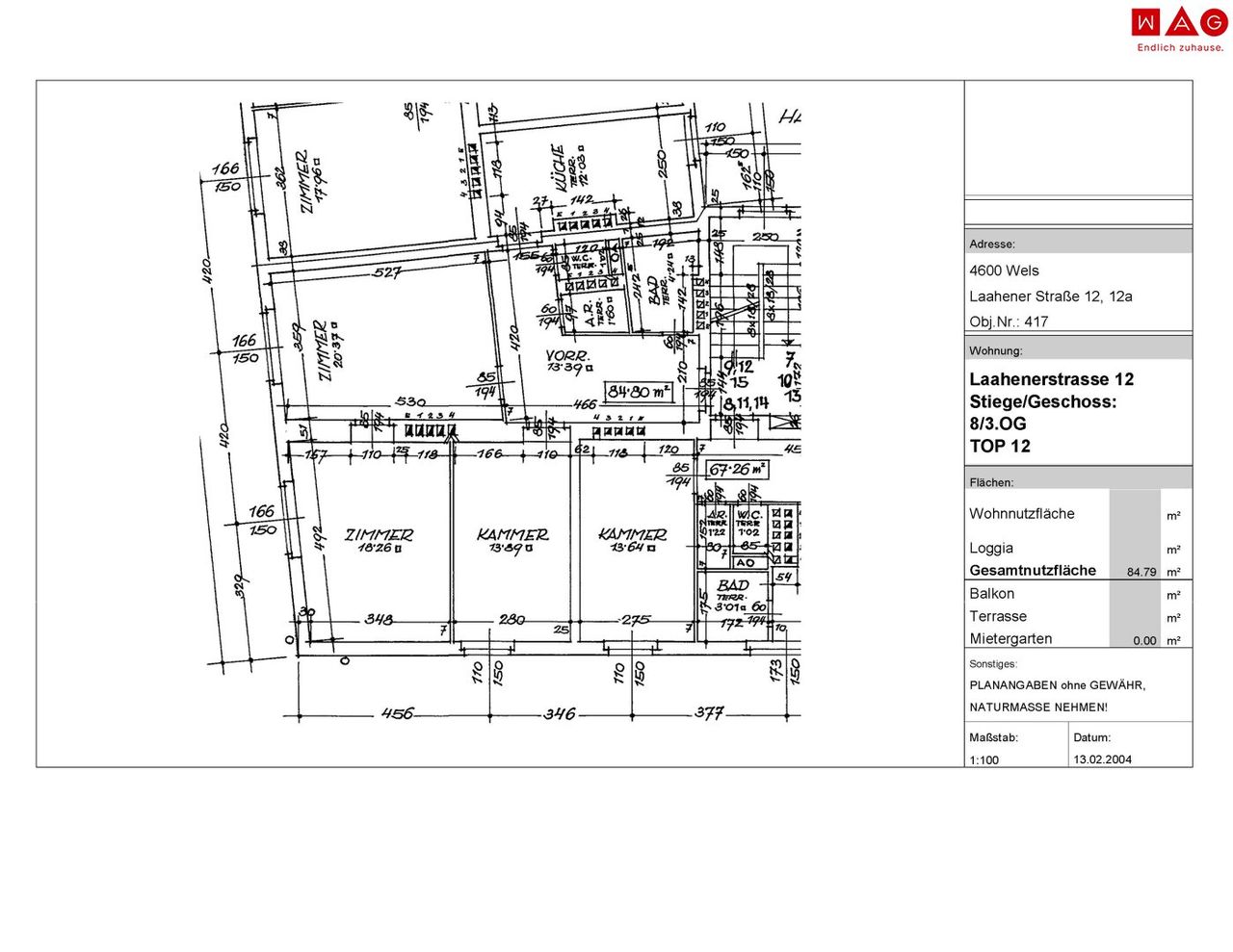 Die Wohnung befindet sich in der Laahener Straße 12, 4600 Wels, einer zentralen und gut angebundenen Wohnlage mit ausgezeichneter Infrastruktur.