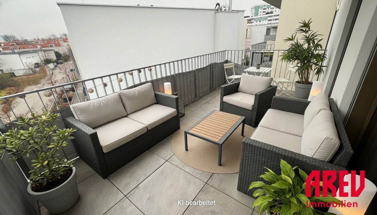 Der lichtdurchflutete Wohnbereich ist das Herzstück dieser Wohnung, in dem Sie entspannen und gesellige Abende mit Freunden und Familie verbringen können. Von hier aus gelangen Sie auf den charmanten Balkon, der Ihnen die Möglichkeit bietet, frische Luft zu schnappen und die Sonne zu genießen – der perfekte Ort für Ihre Morgenkaffeemomente oder entspannende Sommerabende.