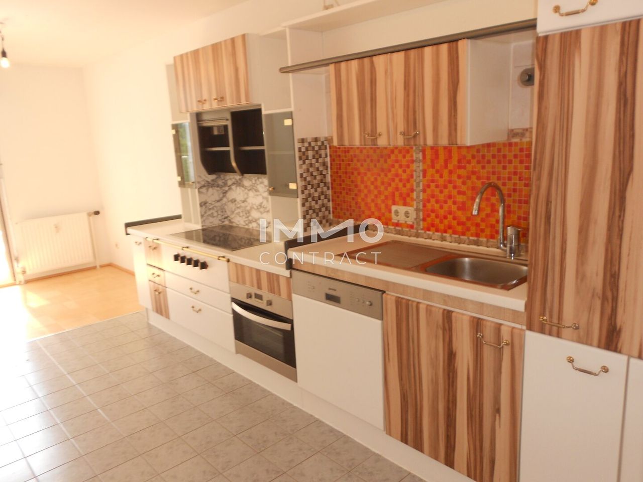 Die Wohnung ist mit einer ablösefreien Einbauküche (Beispielfoto) mit E-Geräten ausgestattet. Unmittelbar vor der Türe befinden sich zahlreiche Einkaufsmöglichkeiten mit einer guten Infrastruktur.