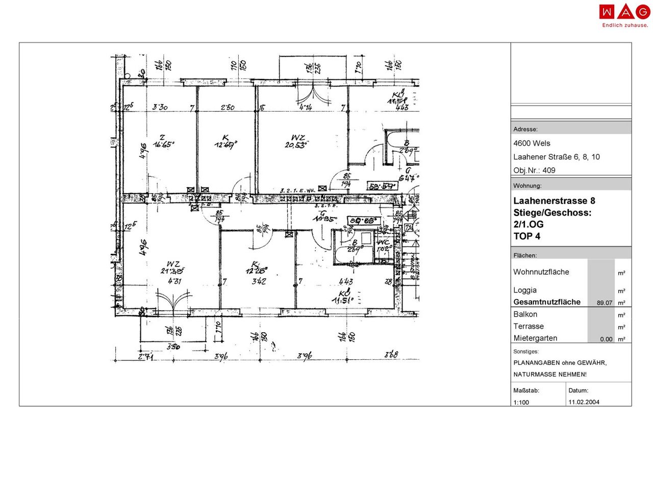 In der Laahener Straße 8, 4600 Wels, steht diese großzügig geschnittene Wohnung im 1. Obergeschoss (Top 4) zur Vermietung.
