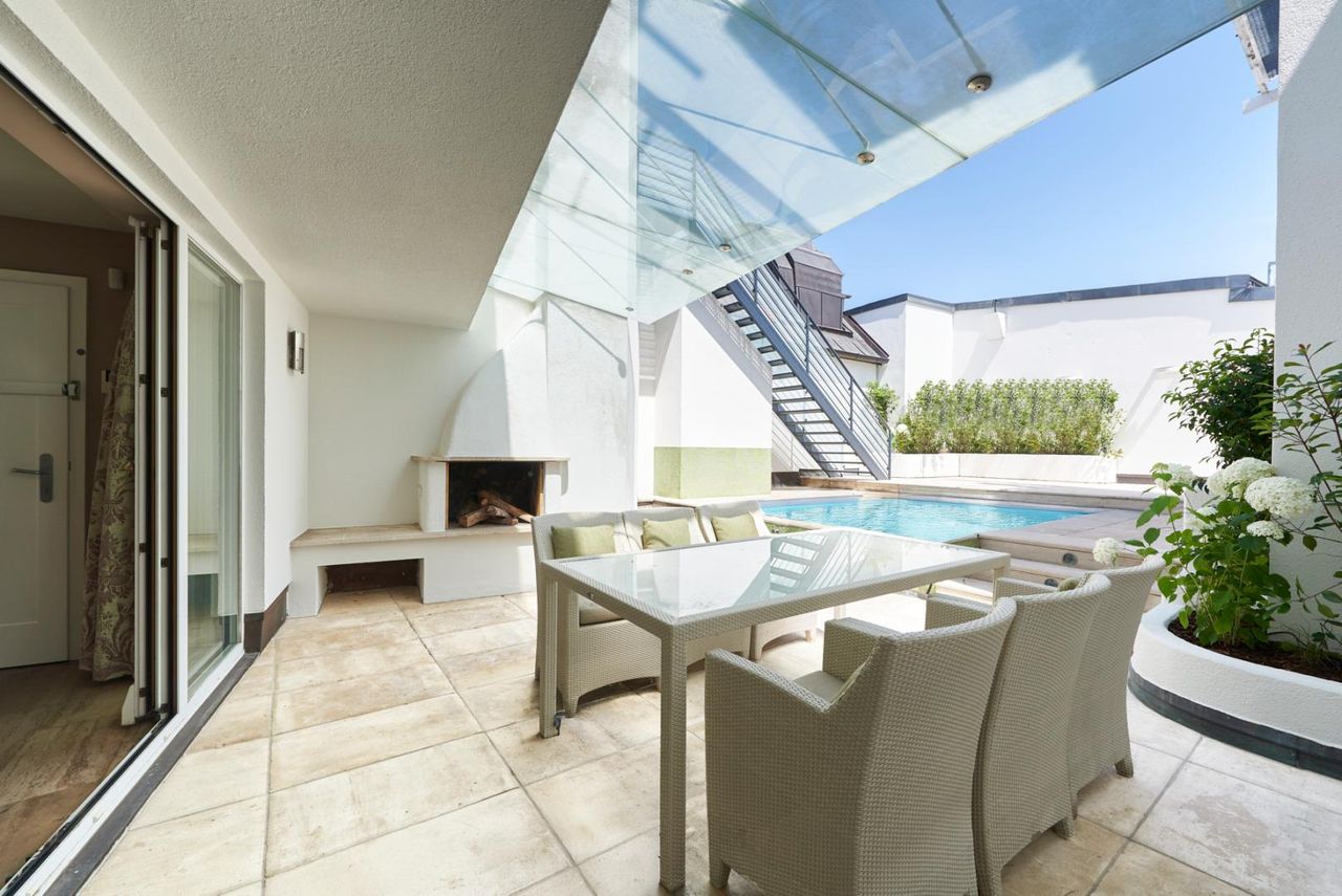 Diese exklusive Dachgeschosswohnung mit zwei Wohnebenen befindet sich im begehrten 1. Bezirk Wiens und verkörpert höchsten Wohnluxus. Bei Betreten der Residenz offenbart sich eine begrünte Terrasse mit privatem Outdoor-Pool und Kamin - eine absolut ungestörte Oase der Privatsphäre. Ein separater Lagerraum grenzt direkt an den Poolbereich für komfortable Aufbewahrung. Die darüberliegende Dachterrasse bietet einen atemberaubenden Rundumblick über die majestätische Innenstadt Wiens.