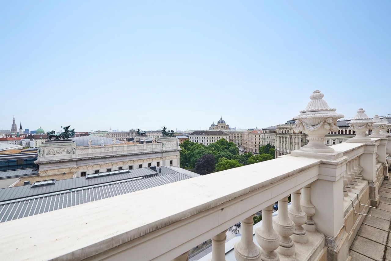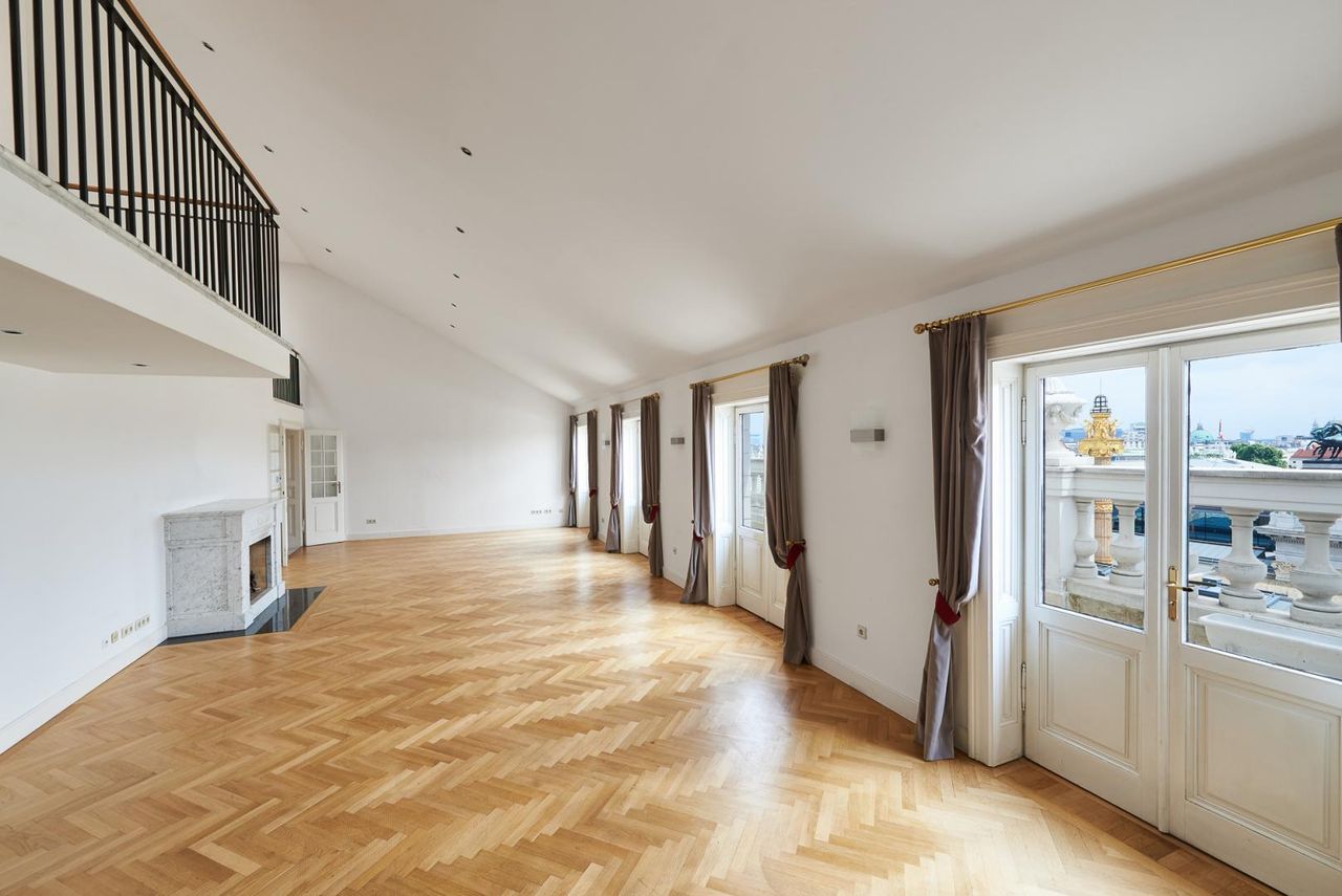 Diese herrschaftliche Ringstraßenpalaiswohnung lässt keine Wünsche offen. Bestens gelegen, im berühmten Rahthausviertel Wiens, residieren Sie unweit von Rathaus und Parlament, mit atemberaubenden Blick auf die historischen Gebäude. Diese Wohnung erstreckt sich über ca. 214m² Wohnfläche und verfügt über zwei Schlafzimmer plus zwei Bäder, drei Toiletten, einer Garderobe und einer Komplettküche. Sie wurde 2012 komplett neu adaptiert und glänzt mit historischen Elementen wie einem originalen Barockkamin, Jugendstilglasfenster, Stuckdecken und historischen Luster. Ein ca. 62m² großer Wohnsalon sowie ein Esszimmer und die Dachterrasse mit wunderschönem 360 Grad Blick über den Dächern Wiens runden das Raumangebot ab. AUSSTATTUNG -Kamin -Dachgarten - Marmor- und...