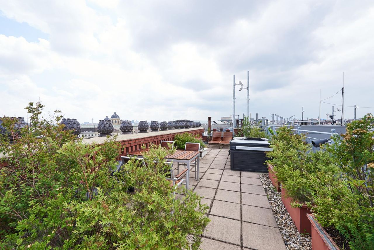 Ein ca. 62m² großer Wohnsalon sowie ein Esszimmer und die Dachterrasse mit wunderschönem 360 Grad Blick über den Dächern Wiens runden das Raumangebot ab.