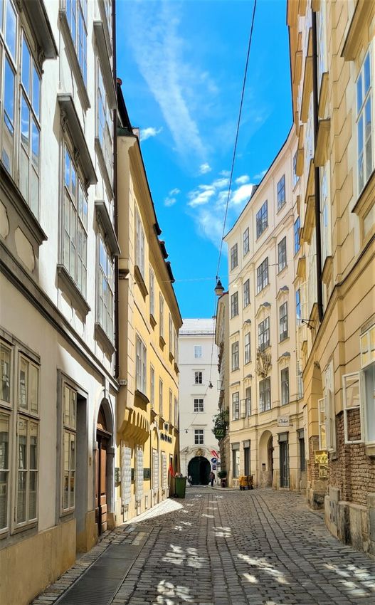 Die Domgasse befindet sich in unmittelbarer Nähe zum Stephansdom/Stephansplatz - im absoluten Zentrum von Wien. Das Mozarthaus (wo Mozart von 1784 bis 1787 arbeitete, heute ein Museum) ist 100 m entfernt. Das Haus wurde 2005 komplett renoviert und dabei an der zum Innenhof gerichteten Südseite eine Wohnzimmer-Erweiterung mit großzügigen Verglausungen realisiert, welche zum großen, hellen, absolut ruhigen und grünen Innenhof ausgerichtet ist.