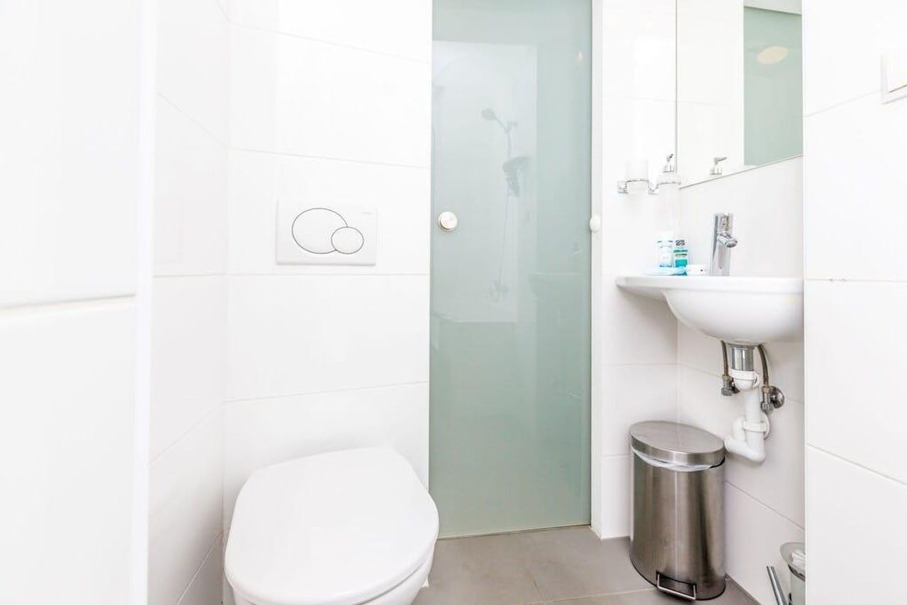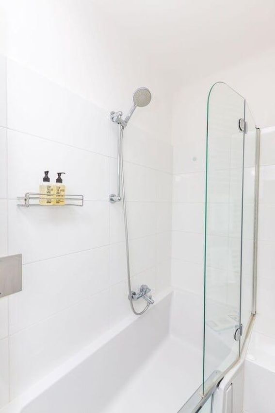 > Badezimmer mit Duschwanne und WC