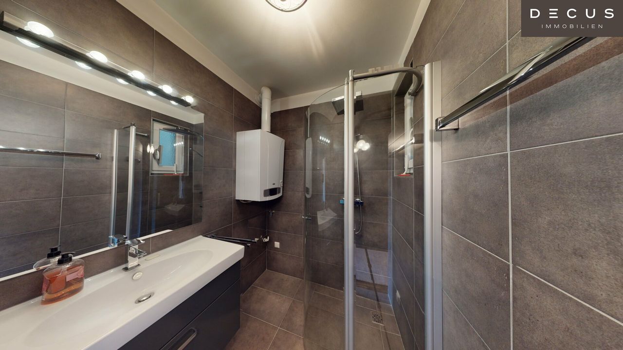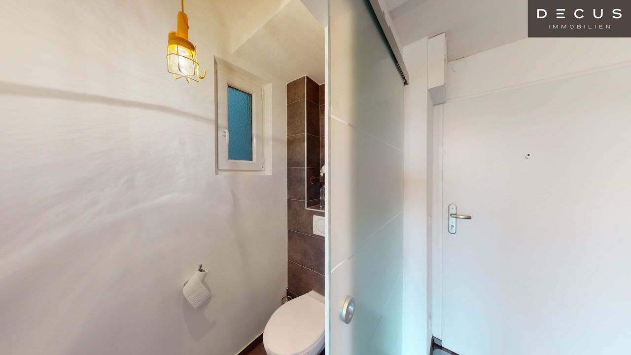 Die Wohnung verfügt über ein modernes Bad mit schönen Fliesen und ein getrenntes WC. Der Eingangsbereich und der Wohnbereich sind mit hochwertigen Parkettböden ausgestattet.