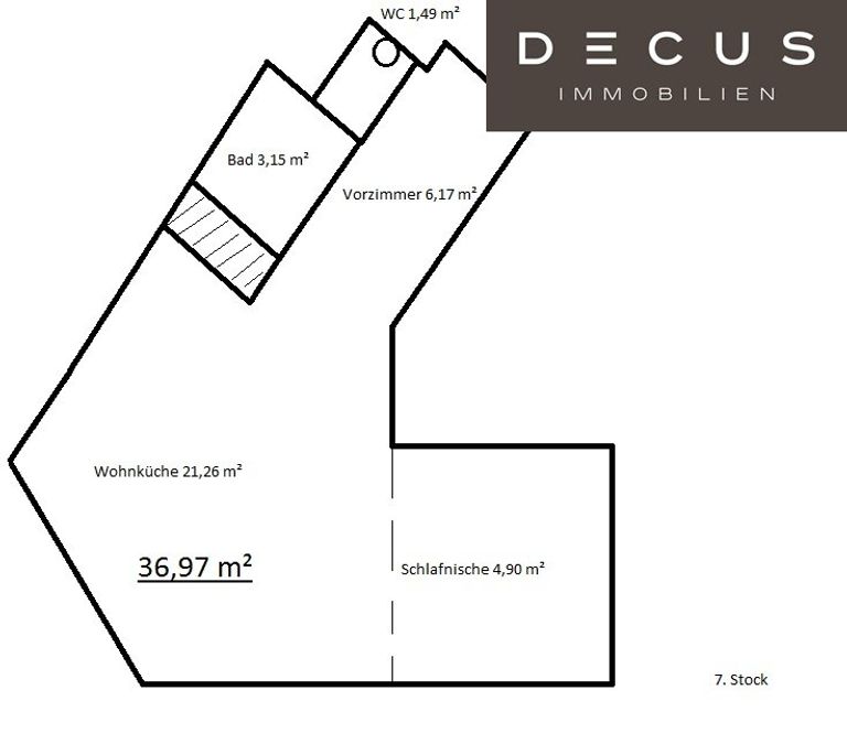Die Wohnnutzfläche beträgt rund 37m² und bietet Ihnen ein sehr gemütliches und ruhiges Flair in Zentrumsnähe.