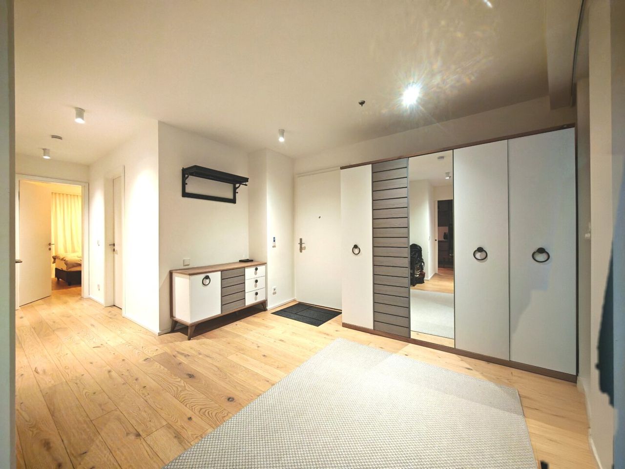 Sie ist weitläufig und hell, mit 2 Schlafzimmern ideal für Kleinfamilien bis zu 3 Personen bzw. Singles oder Pärchen. Die Ausstattung bietet alles, was man zum komfortablen Leben auf Zeit benötigt, ohne auf zu-Hause-Gefühl verzichten zu müssen: geräumiger Vorraum, 2 voll ausgestattete Schlafzimmer, zwei Bäder (Dusche und Wanne) mit zwei Toiletten (eine davon getrennt vom Bad), offene Wohnküche mit praktischer Küchenzeile, Esstisch, gemütliche Sitzgarnitur und südseitiger Balkon mit Sitzmöglichkeit zum Verweilen, viele Kleiderschränke, bequeme Betten und weitere notwendige Utensilien und Einrichtungsgegenstände.