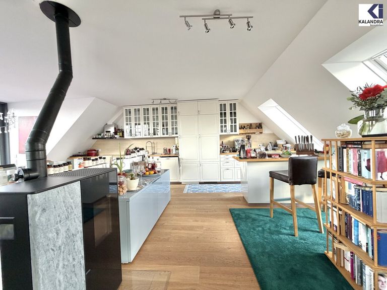 Die Wohnung liegt in einem exklusiv ausgebauten Dachgeschoß (BJ 2020) eines generalsanierten Jahrhundertwendehauses mit Panoramablick über die Stadt bis zum Kahlenberg und Leopoldsberg.