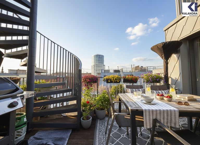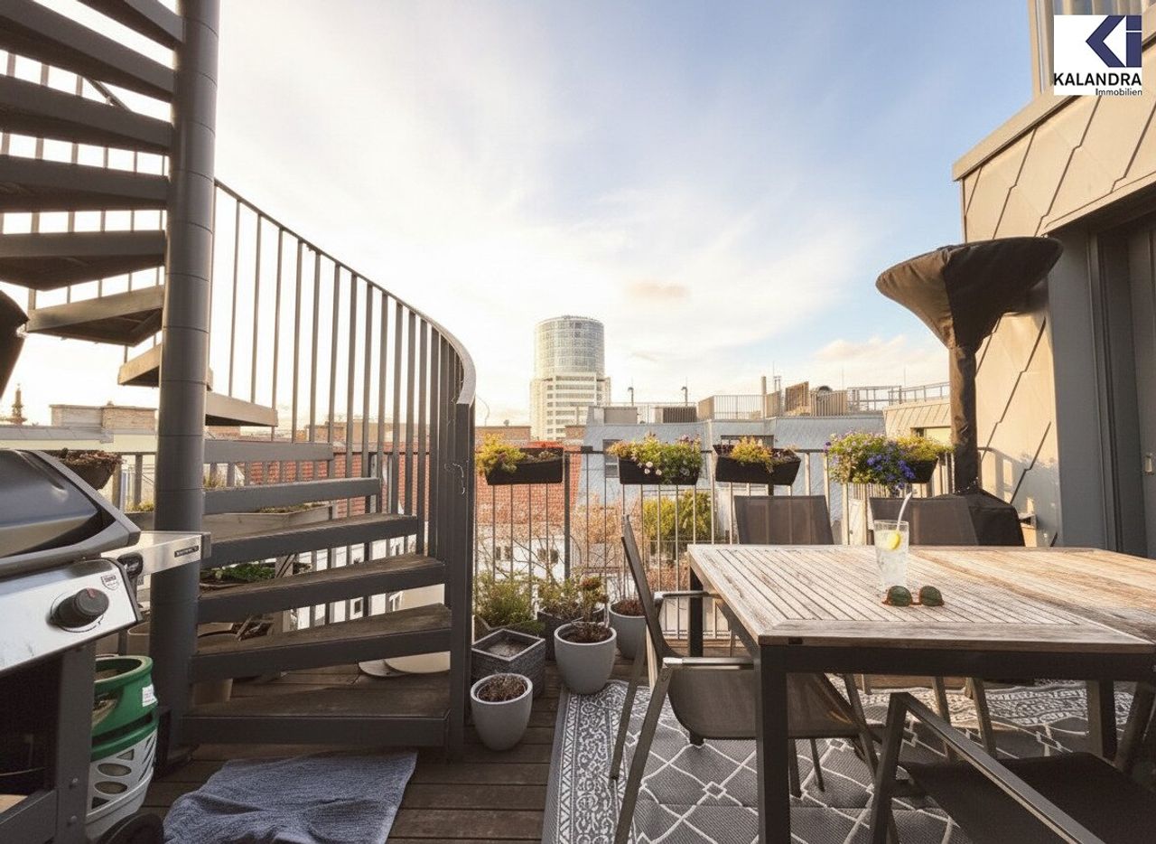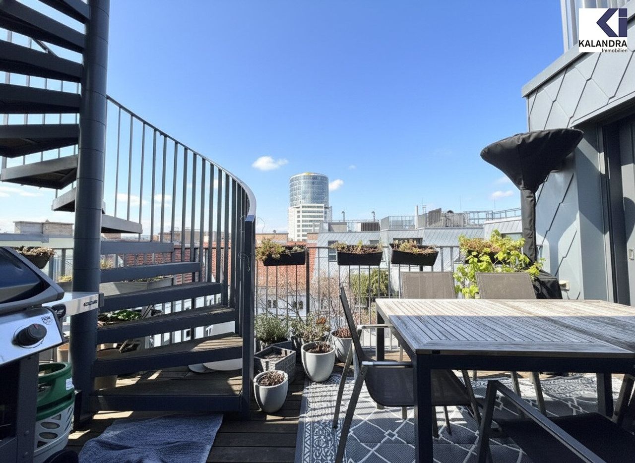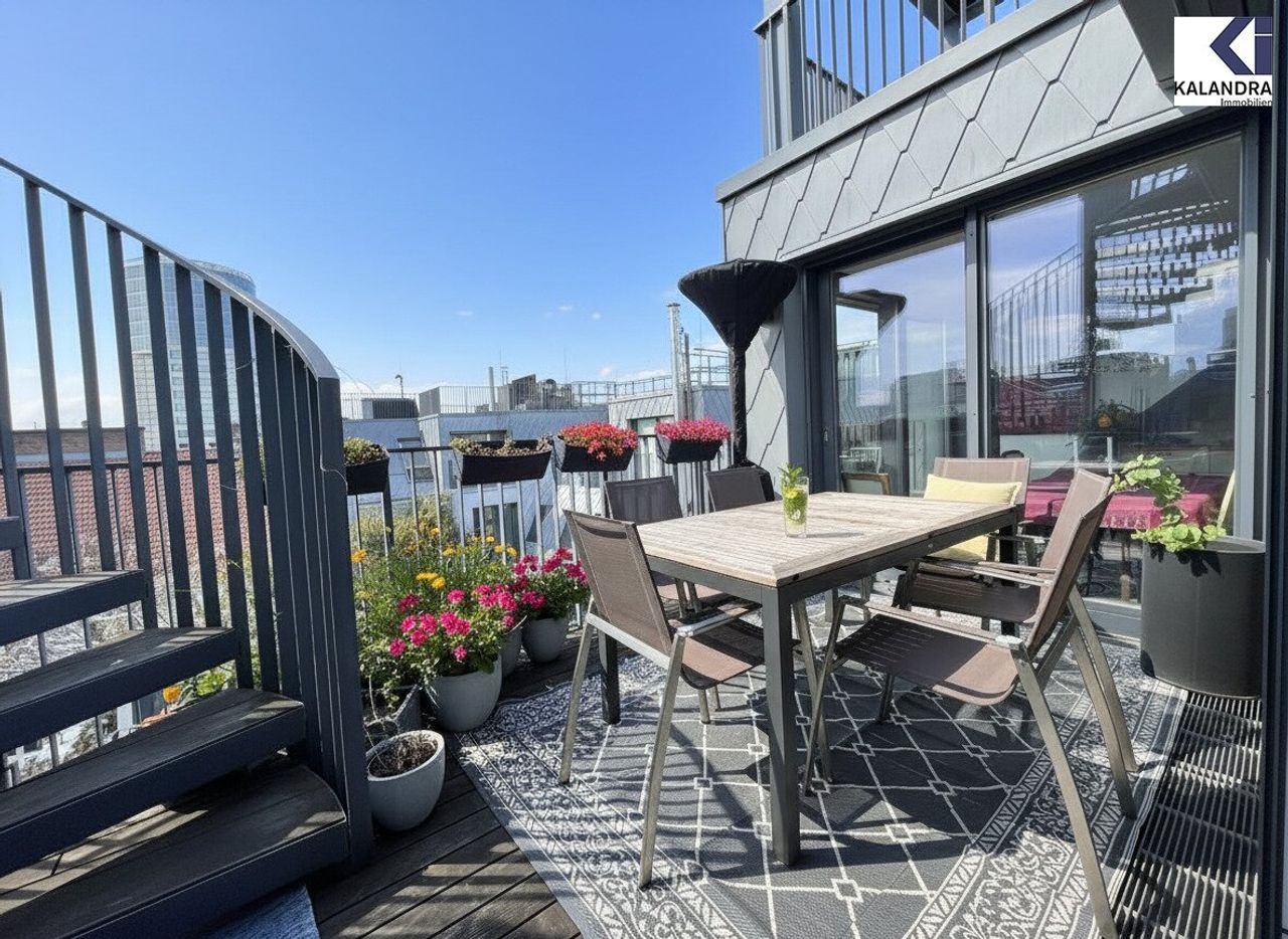 Eine 40 m² große Dachterrasse mit Rundumblick über Wien.