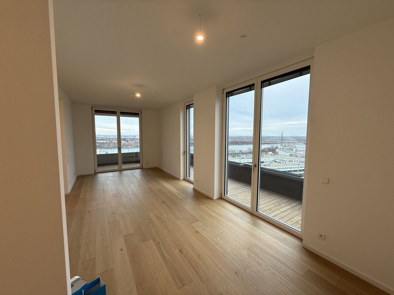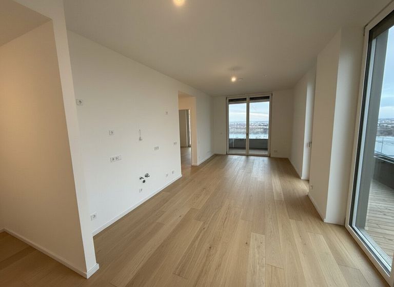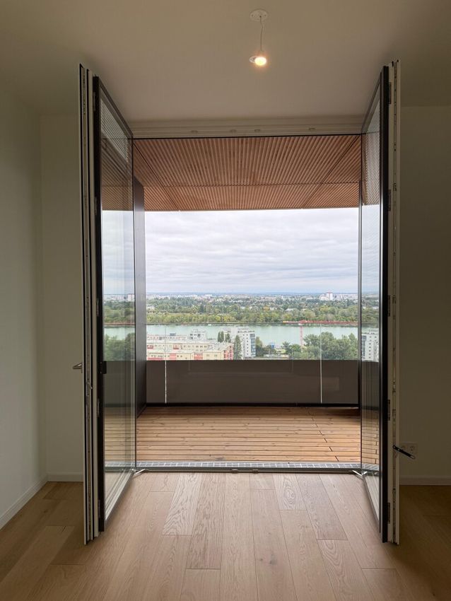 • Wohnfläche: ca. 58 m² • Balkon: großzügiger, ums Eck verlaufender Ost-Balkon mit Weitblick • Stockwerk: 19. Etage – lichtdurchflutet, Fernblick • 2,90 m Raumhöhe – großzügiges Raumgefühl • Parkettboden in den Wohnräumen • Fußbodenheizung & Deckenkühlung • Große bodentiefe...