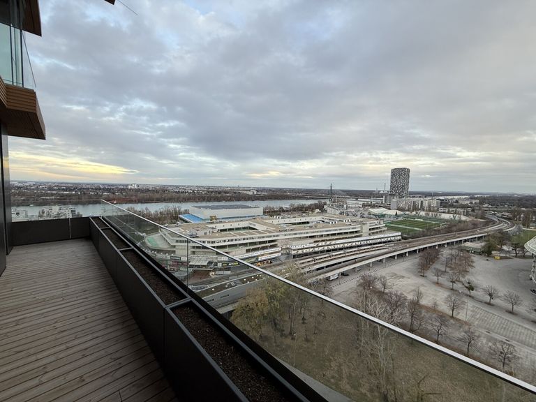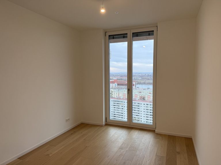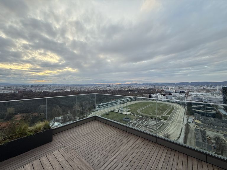 Im exklusiven Wohnhochhaus „Grünblick“ im Viertel Zwei, direkt am Wiener Prater und entwickelt von Value One, gelangt diese außergewöhnliche 2-Zimmer-Wohnung mit rund 58 m² Wohnfläche plus umlaufendem Ost-Balkon zur Vermietung. Die Wohnung befindet sich im 19. Obergeschoss und bietet dank der Raumhöhe von 2,90 m, bodentiefen Fenstern und großzügigen Flügeltüren ein besonders luftiges Wohngefühl.