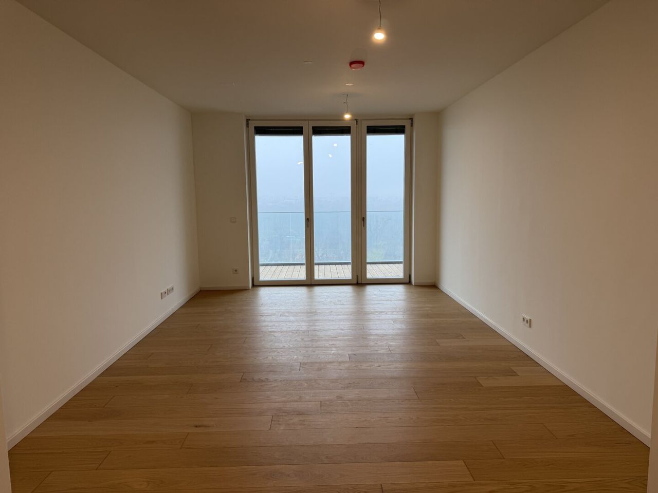 Im exklusiven Wohnhochhaus „Grünblick“ im Viertel Zwei, direkt am Wiener Prater und entwickelt von Value One, gelangt diese außergewöhnliche 3-Zimmer-Wohnung mit rund 82 m² Wohnfläche plus Süd-West-Balkon zur Vermietung. Die Wohnung befindet sich im 13. Obergeschoss und bietet dank der Raumhöhe und bodentiefen Fenstern ein besonders luftiges Wohngefühl.