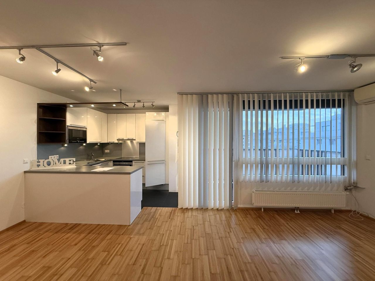 Single split air conditioning, ceiling lighting rail system, exterior blinds, electric