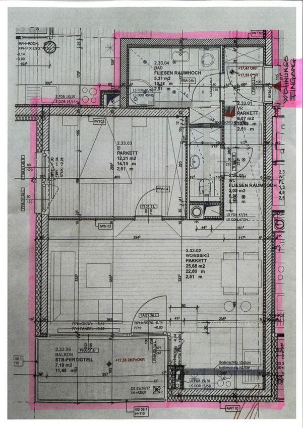ist 12,21 m² groß, die Raumhöhe in der Wohnung beträgt neubauspezifisch 2,51 m.