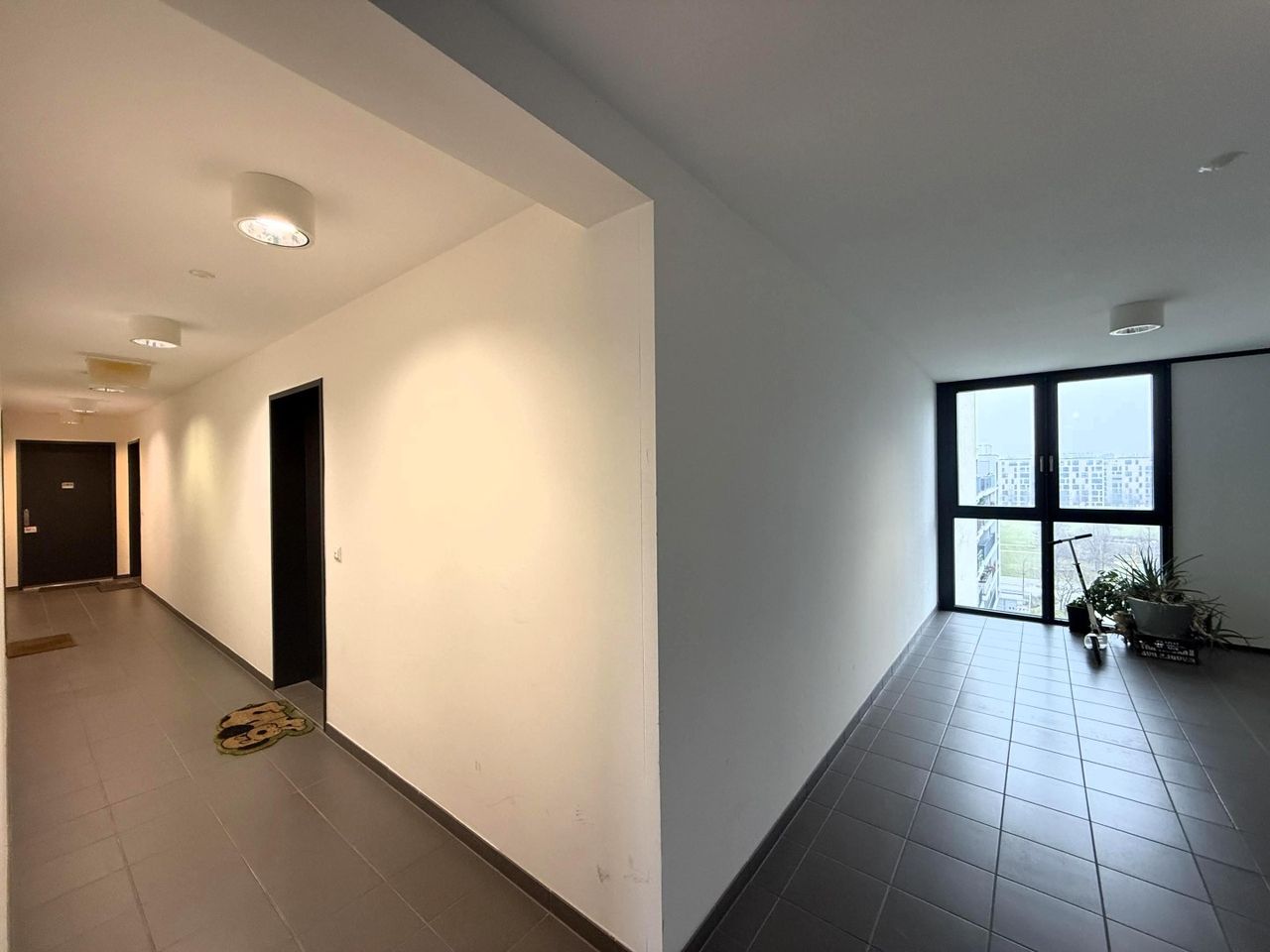 ist hell und hat einen sehr effizienten, modernen Schnitt, ist 51,53 m² groß, hat ein verfliestes Badezimmer mit Dusche, Waschbecken und WM/WT-Trockneranschluss, eine davon getrennte voll automatisierte Toilette mit einem kleinen Handwaschbecken sowie eine 25,68 m² Wohnessküche mit einer maßgeschneiderten Küche mit Markengeräten, an der eine 7,19 m² Außenfläche / Balkon anschließt.