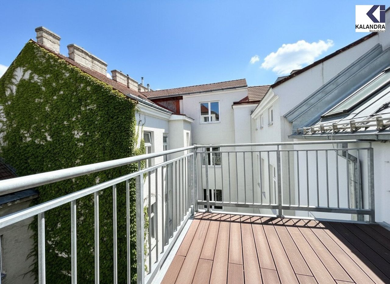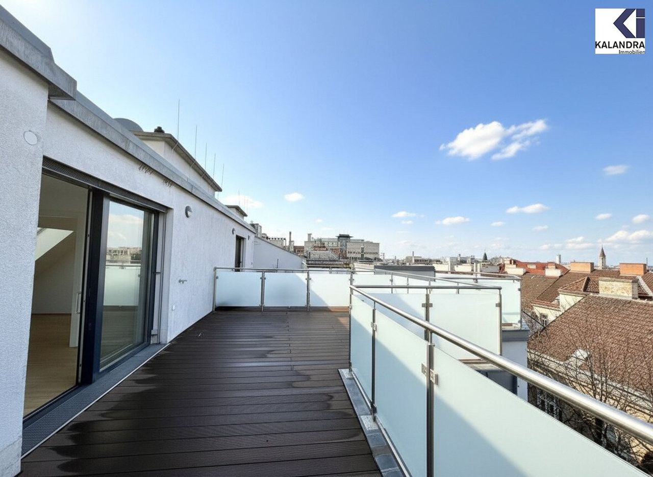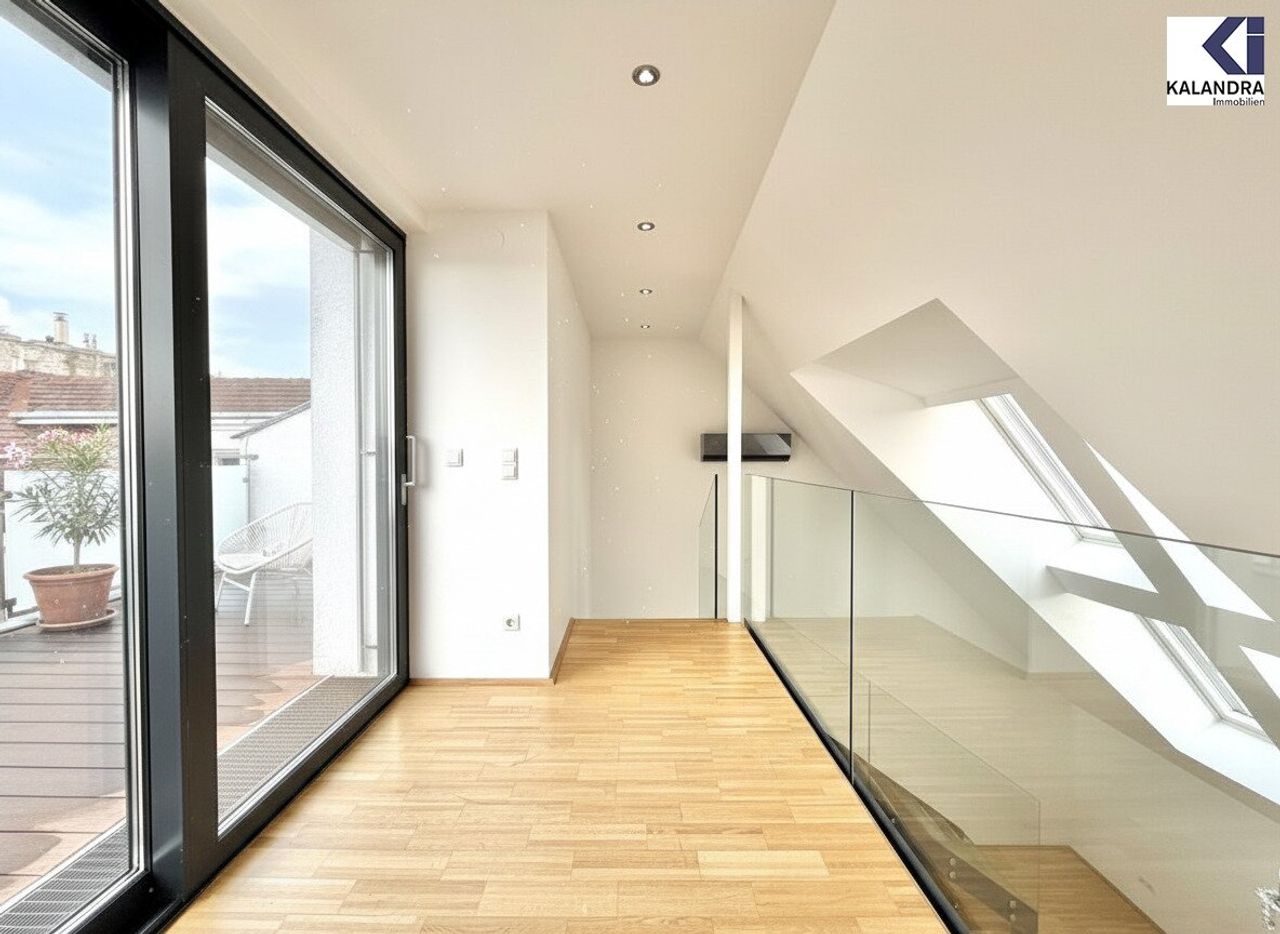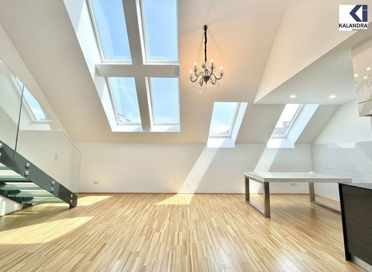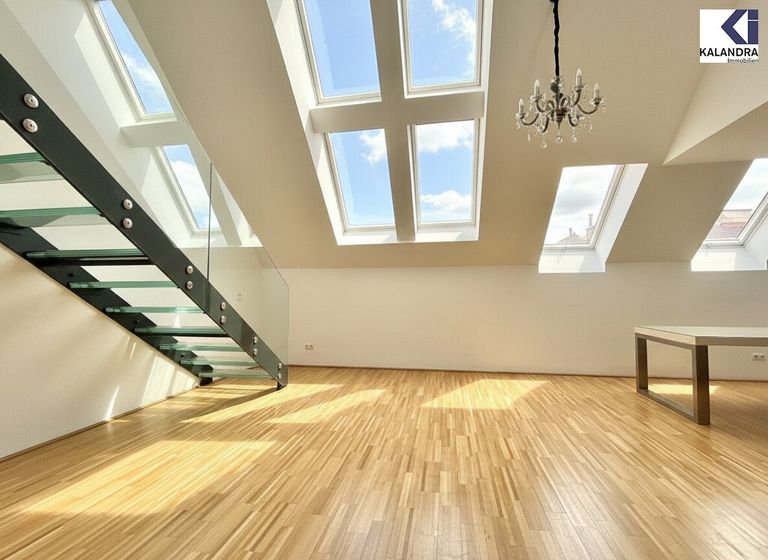 Diese perfekt aufgeteilte 2,5-Dachgeschosswohnung mit 87m² Wohnfläche mit 7m² Innenhofbalkon auf Wohnebene und 33m² Dachterrasse befindet sich im letzten Liftstock.