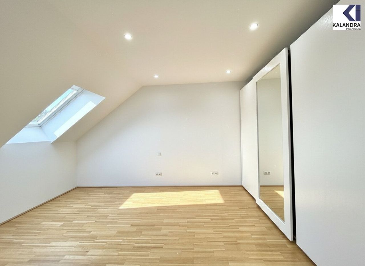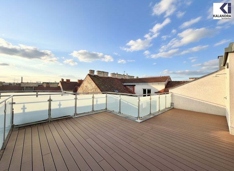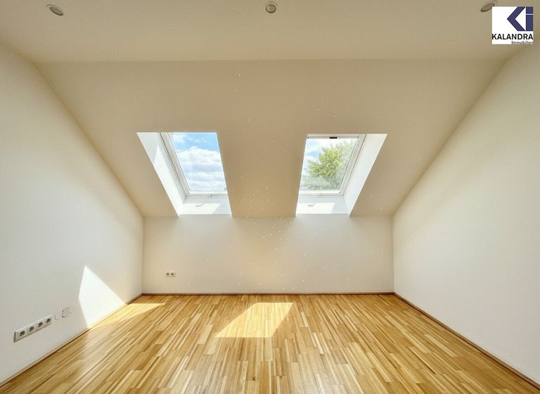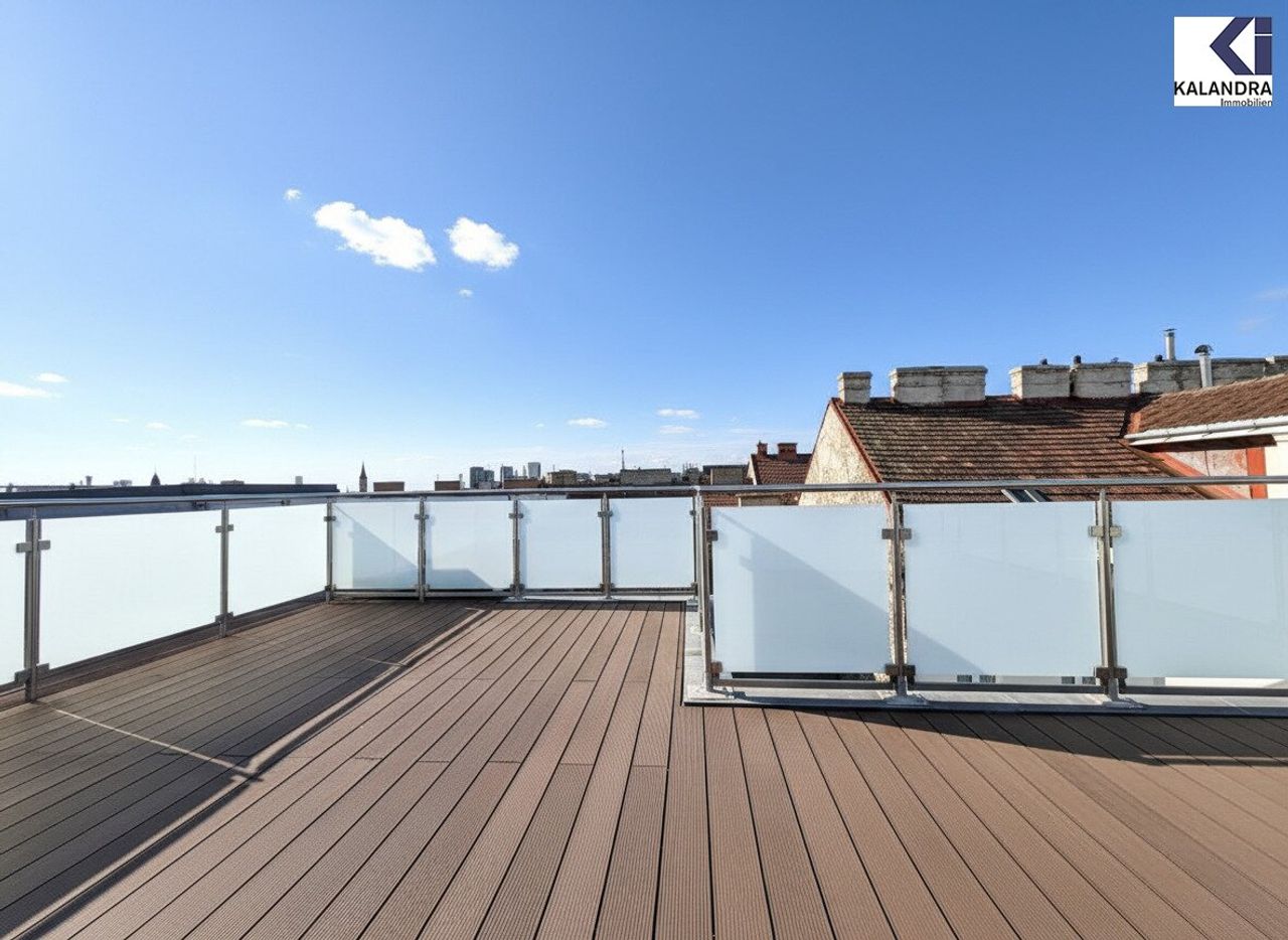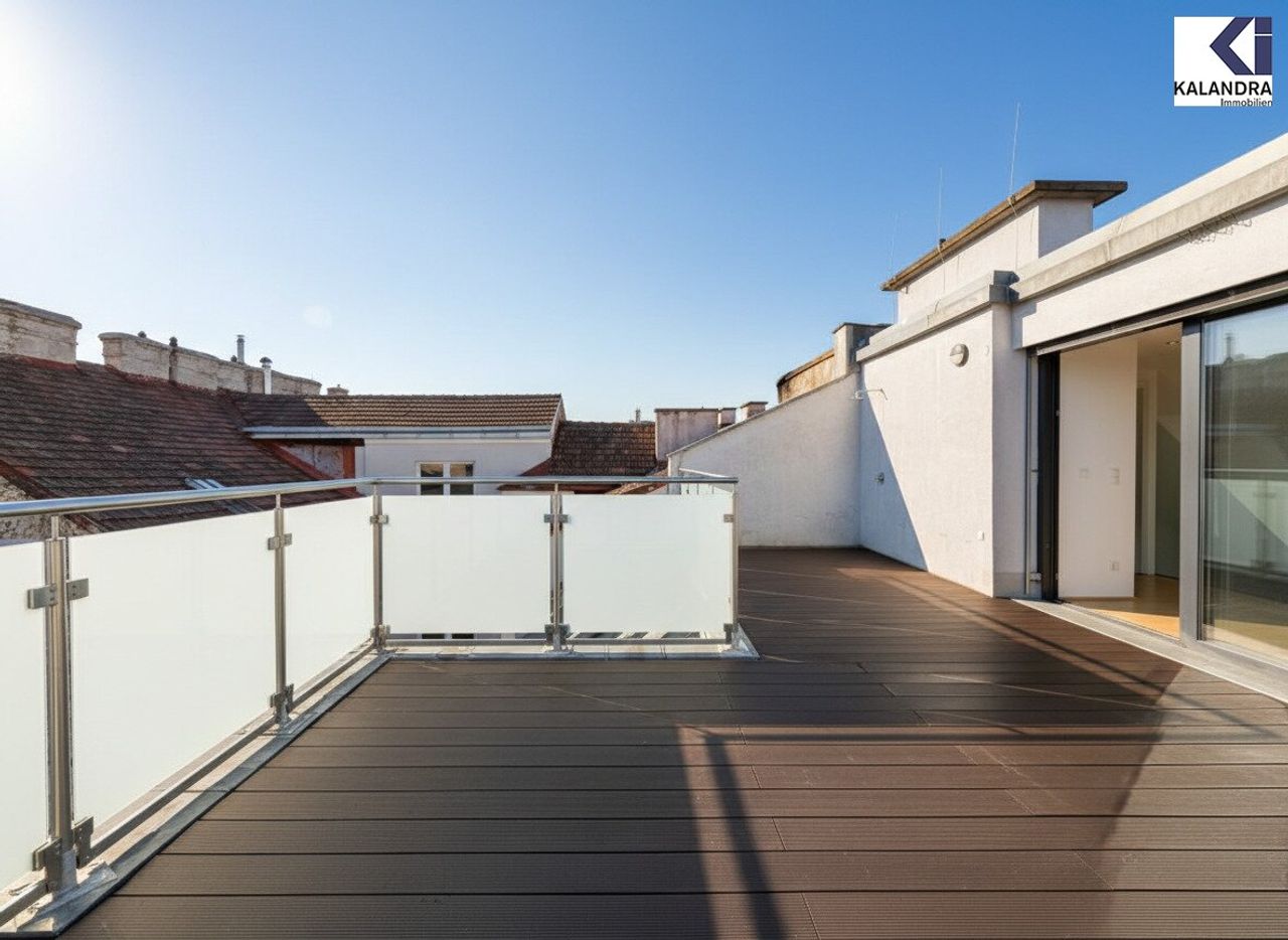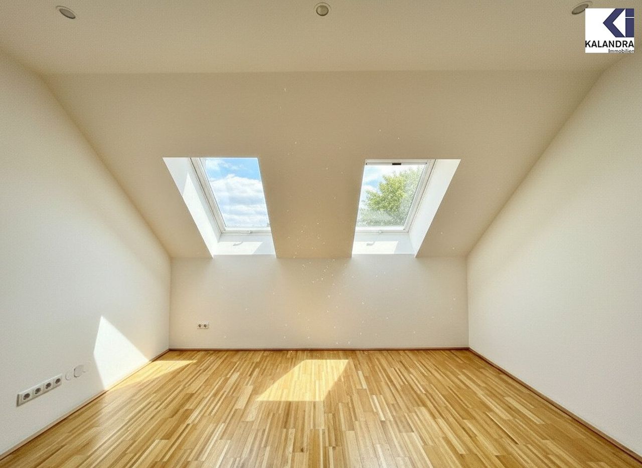 Diese perfekt aufgeteilte 2,5-Dachgeschosswohnung mit 87m² Wohnfläche mit 7m² Innenhofbalkon auf Wohnebene und 33m² Dachterrasse befindet sich im letzten Liftstock.