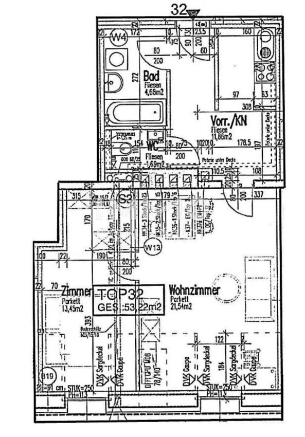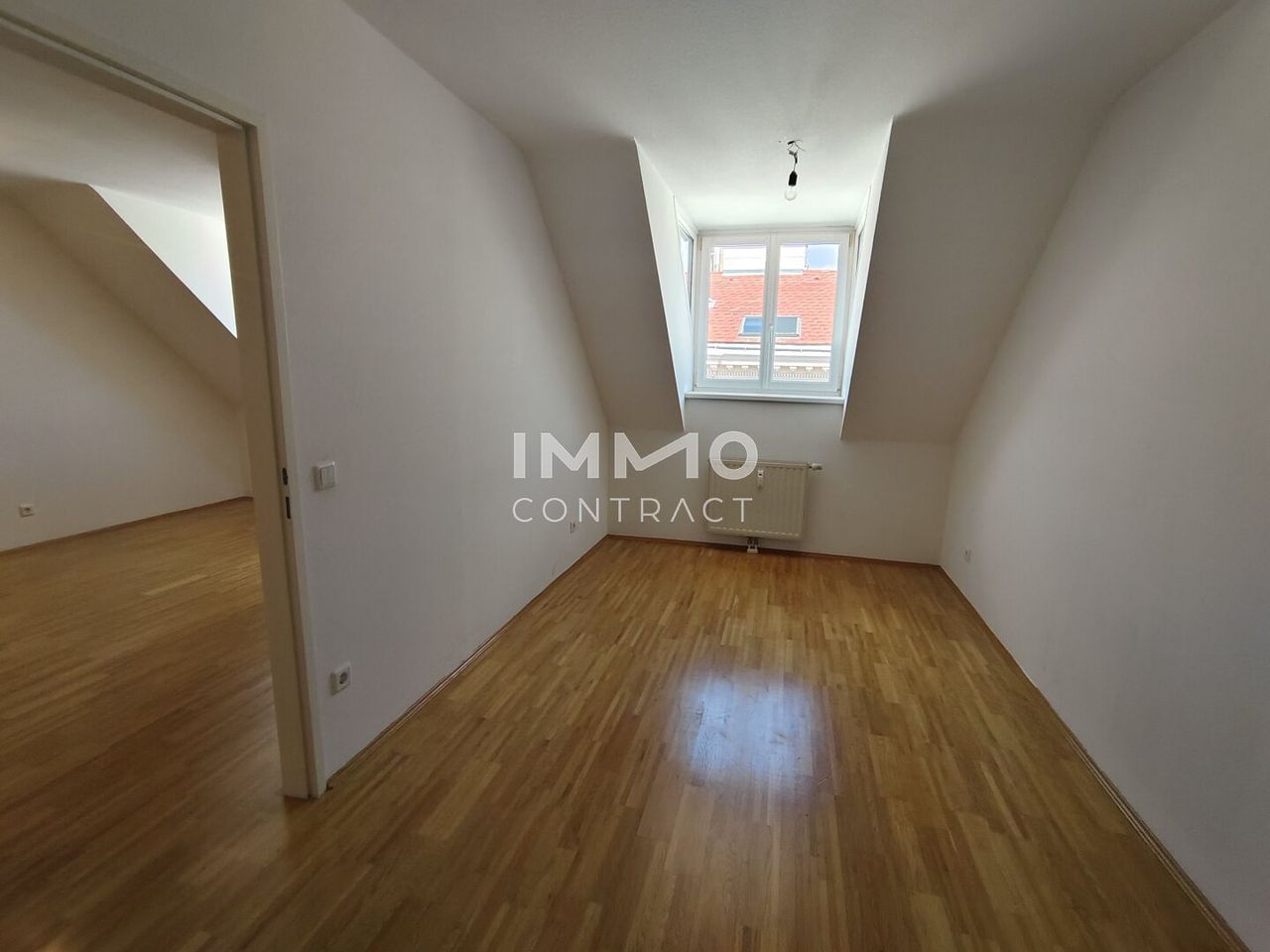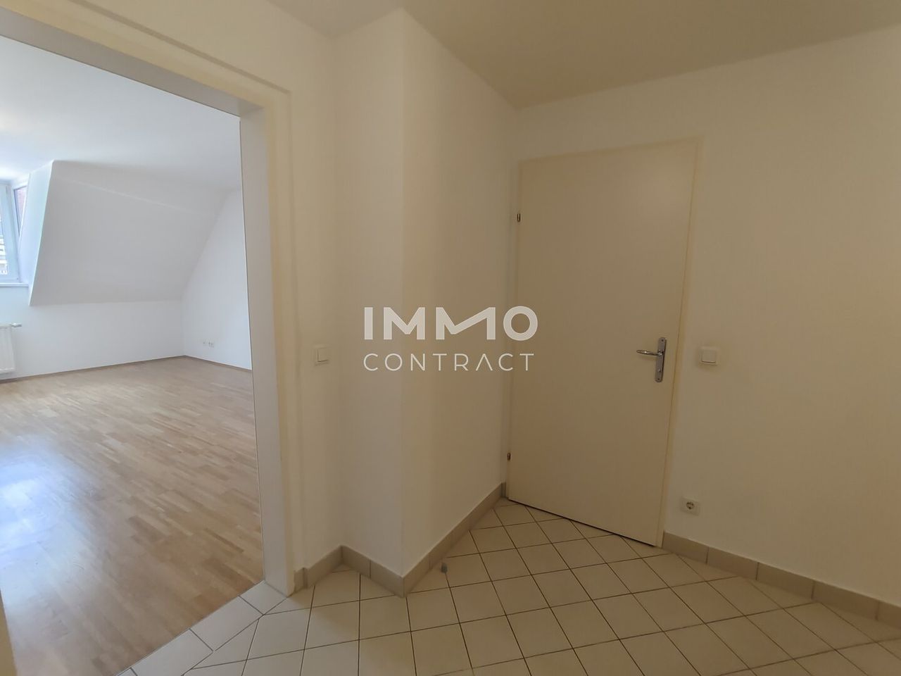Die helle aparte 2 - Zimmer-DG- Wohnung liegt im 4. Luftstock und bietet eine gute Raumaufteilung: Vorraum mit Bad, WC und Abstellraum.