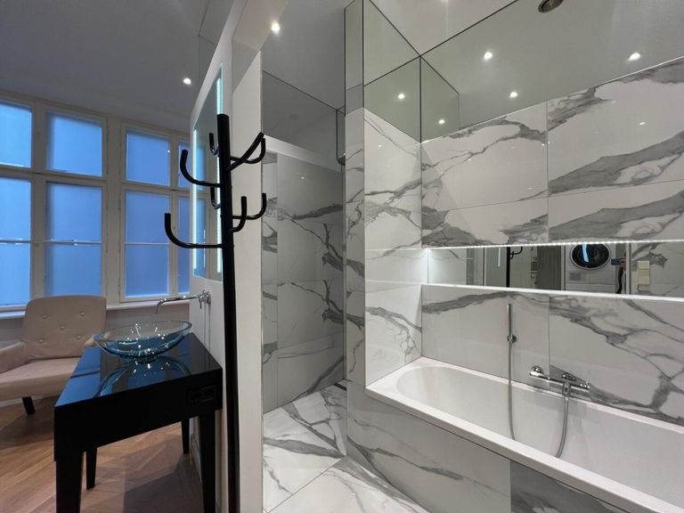 Repräsentatives, schickes 4-Zimmer-Apartment, hochwertig ausgestattet und möbliert - 5 Minuten vom Stadtpark bzw. Bahnhof Wien Mitte / The Mall. Gründerzeithaus mit Säulenvestibül. Nicht barrierefrei!