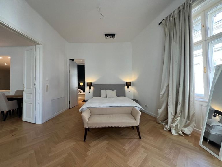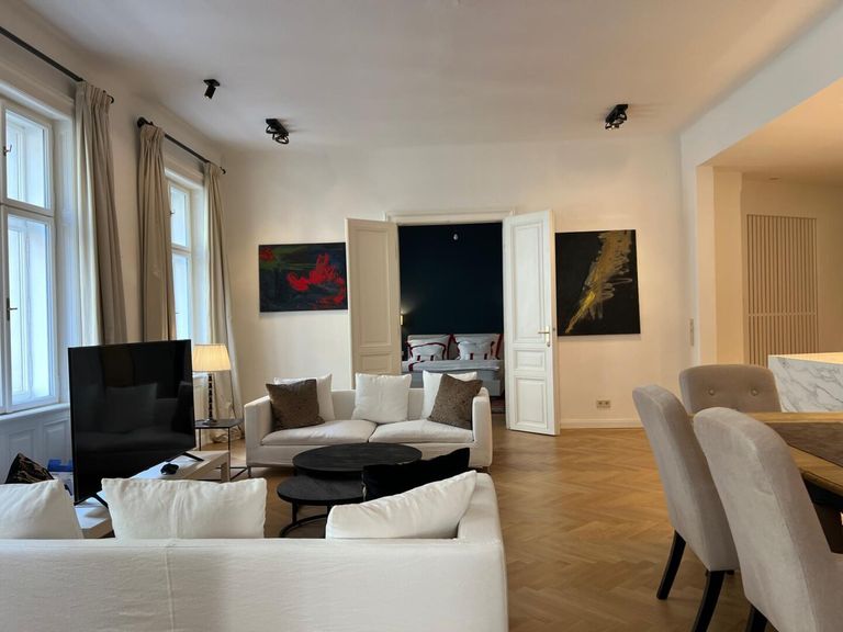 Repräsentatives, schickes 4-Zimmer-Apartment, hochwertig ausgestattet und möbliert - 5 Minuten vom Stadtpark bzw. Bahnhof Wien Mitte / The Mall. Gründerzeithaus mit Säulenvestibül. Nicht barrierefrei!