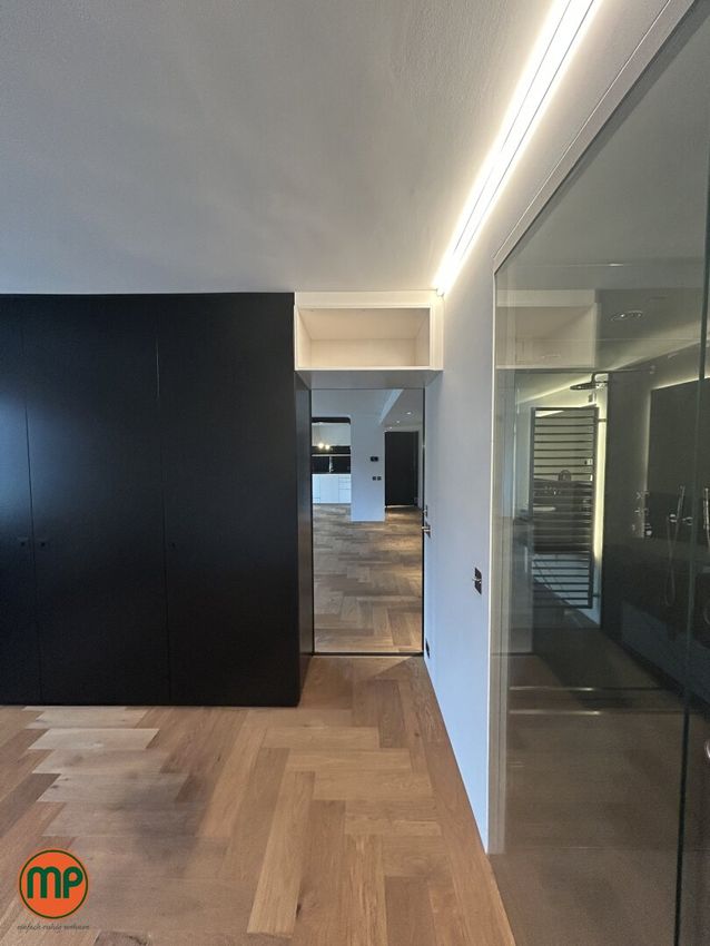 Beim Betreten des Objekts eröffnet sich ein einladender, architektonisch durchdachter Eingangsbereich mit hochwertigem Fliesenboden. Die gesamte Wohnung wurde von einem Architekten mit viel Liebe zum Detail und Sinn für Funktionalität gestaltet.