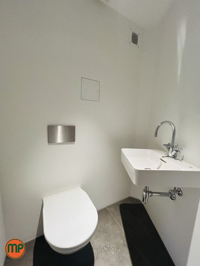 Das separate WC ist mit einem Design-Waschbecken einer renommierten Marke ausgestattet.