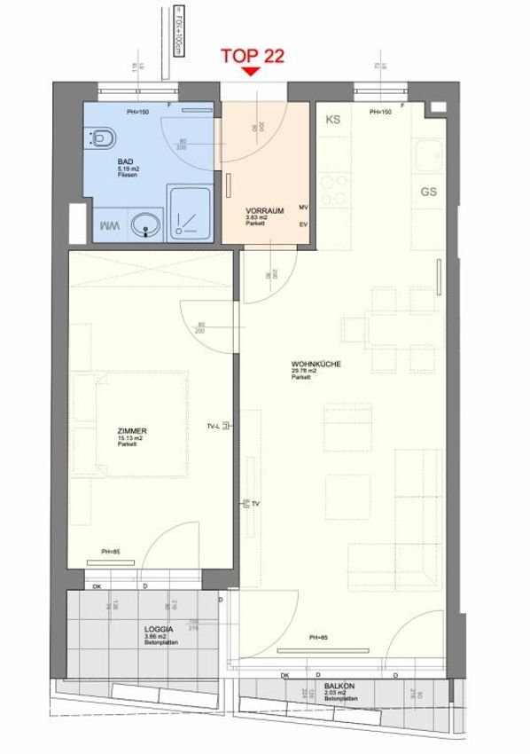 Die Wohnung (57,79m²) liegt im 3. Obergeschoß und ist barrierefrei mit dem Lift erreichbar. Ein KFZ-Stellplatz in der Tiefgarage kann separat angemietet werden.