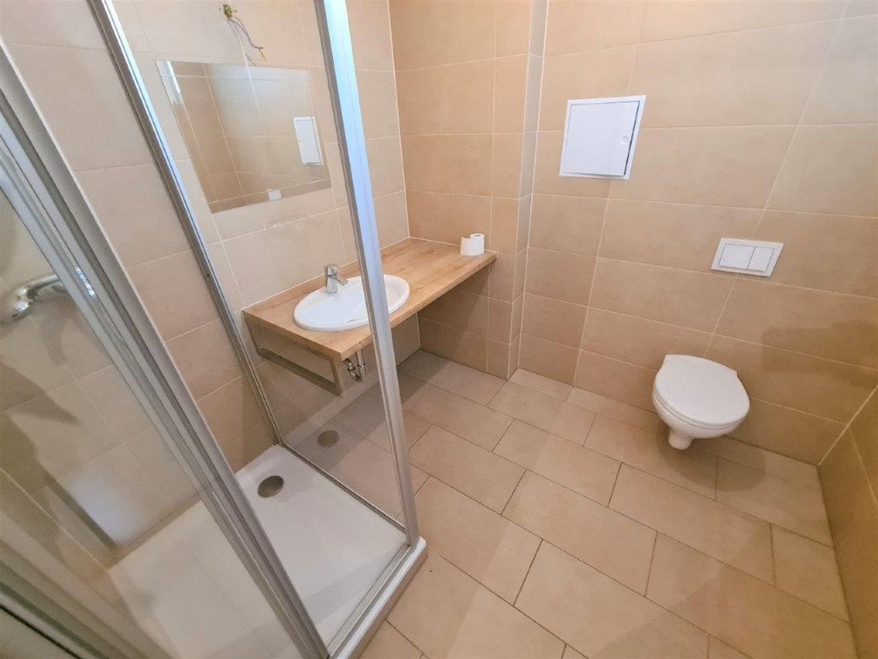 • Bad mit Dusche, Waschtisch, WC und Waschmaschinenanschluss