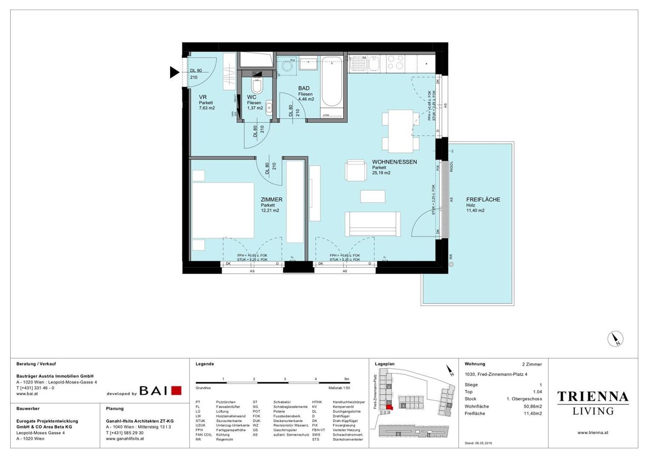 Die Wohnung befindet sich im 1. Stock des 2017 errichteten Wohnhausprojektes Trienna Living und bietet Ihren Bewohnern eine beeindruckende Infrastruktur sowie eine optimale Anbindung ans Verkehrsnetz.