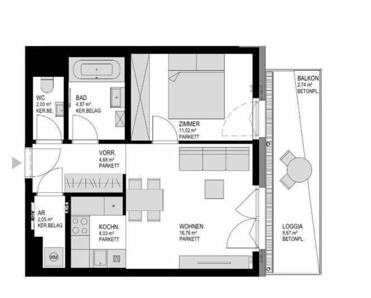 – Großzügige Freiflächen wie Balkon bzw. Terrasse