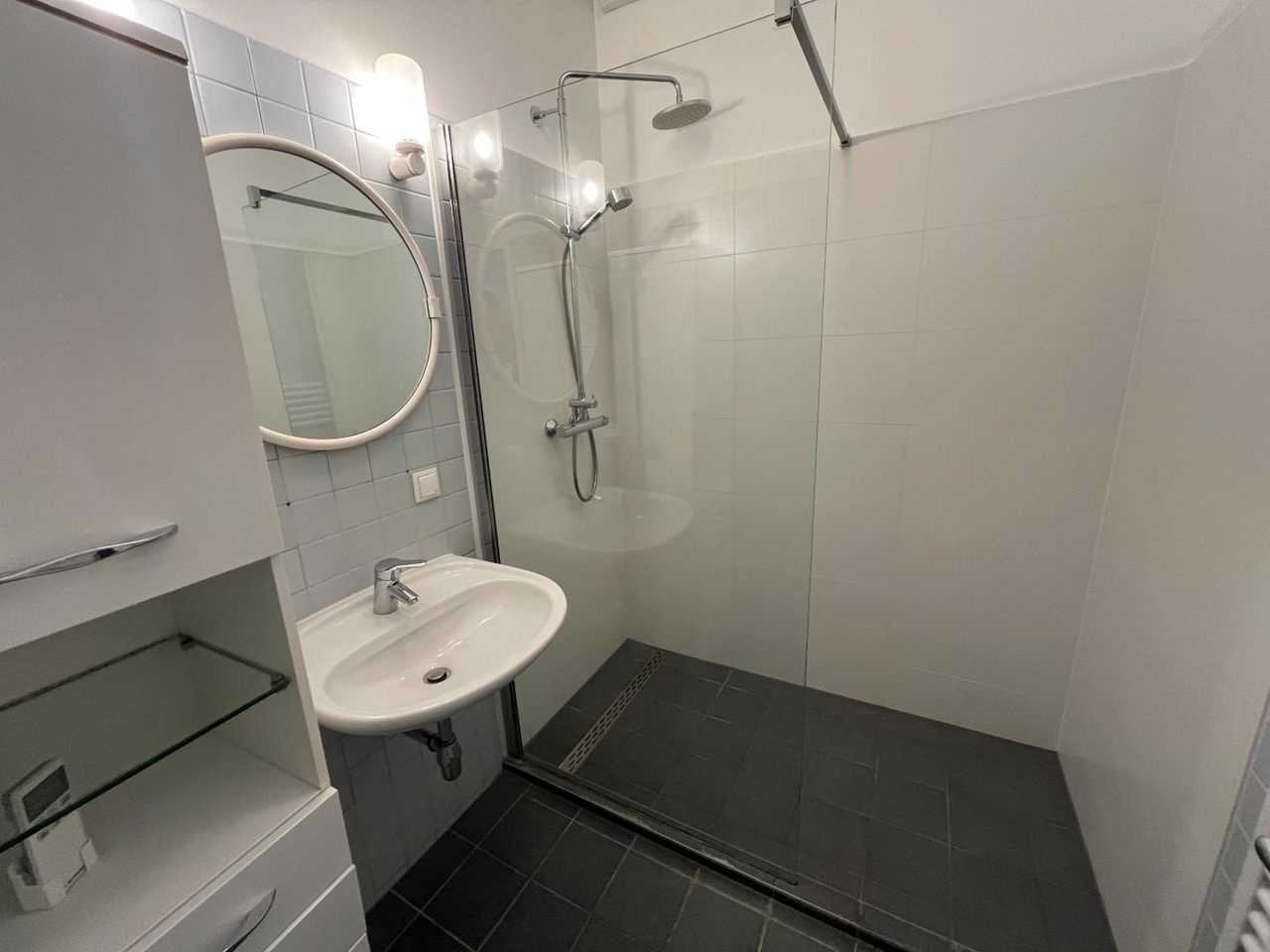 > weiteres Badezimmer mit bodenebener Dusche und WC