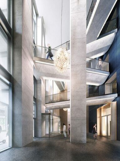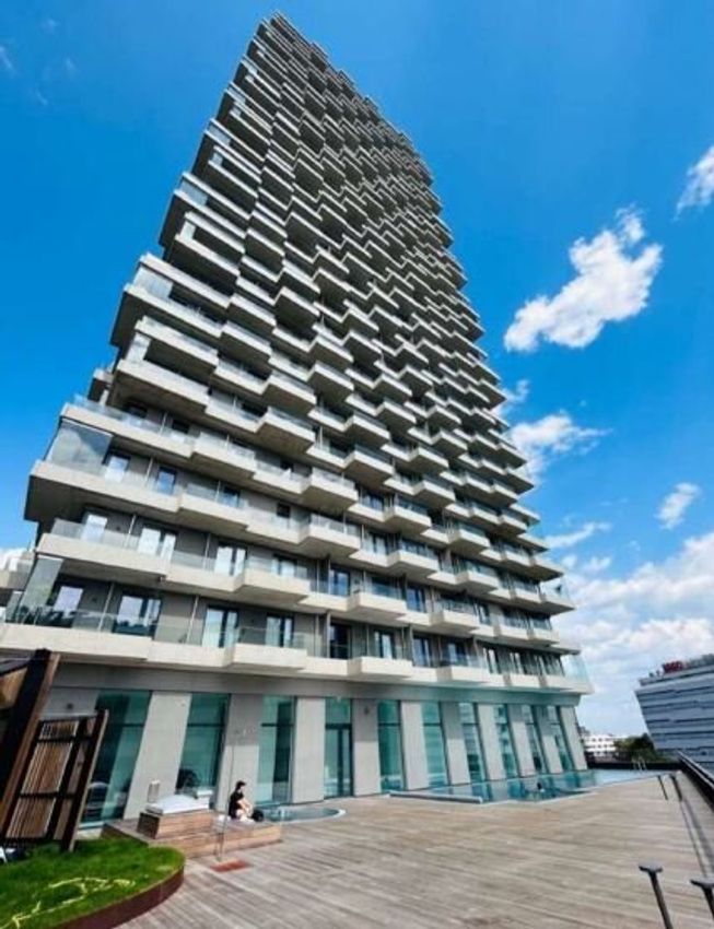 In dem Wohnturm befindet sich ein Outdoor-Pool mit Liegemöglichkeiten zum entspannen, ein Sonnendeck, Kinderwagen- und Fahradräume, Laufstrecke im Dritten Obergeschoss, Paketboxanlage, multifunktionale Gemeinschaftsräume, Indoor- und Outdoor-Kinderspielplätze, Fitnessräume, Spa und Saunabereich, Waschküche, Foyer mit Concierge-Service / Rezeption beim Eingang, attraktive Außenanlagen mit parkähnlichen Freiflächen, Gastronomie, Shops und Lebensmittelhandel.