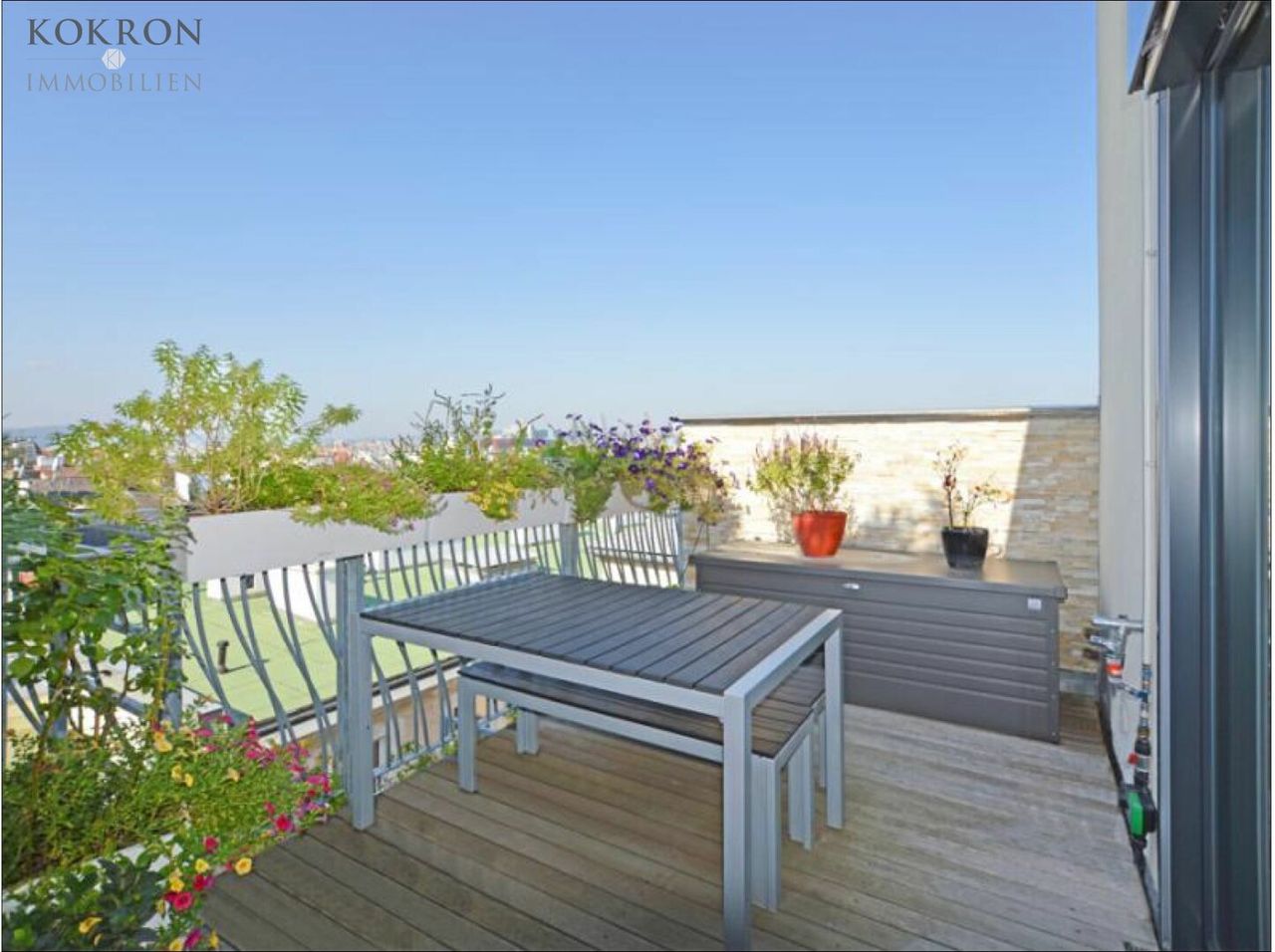 Ein weiteres Highlight wartet auf der dritten Ebene der Wohnung: eine spektakuläre Sonnenterrasse verwöhnt mit einem 360° Blick in alle Himmelsrichtungen.