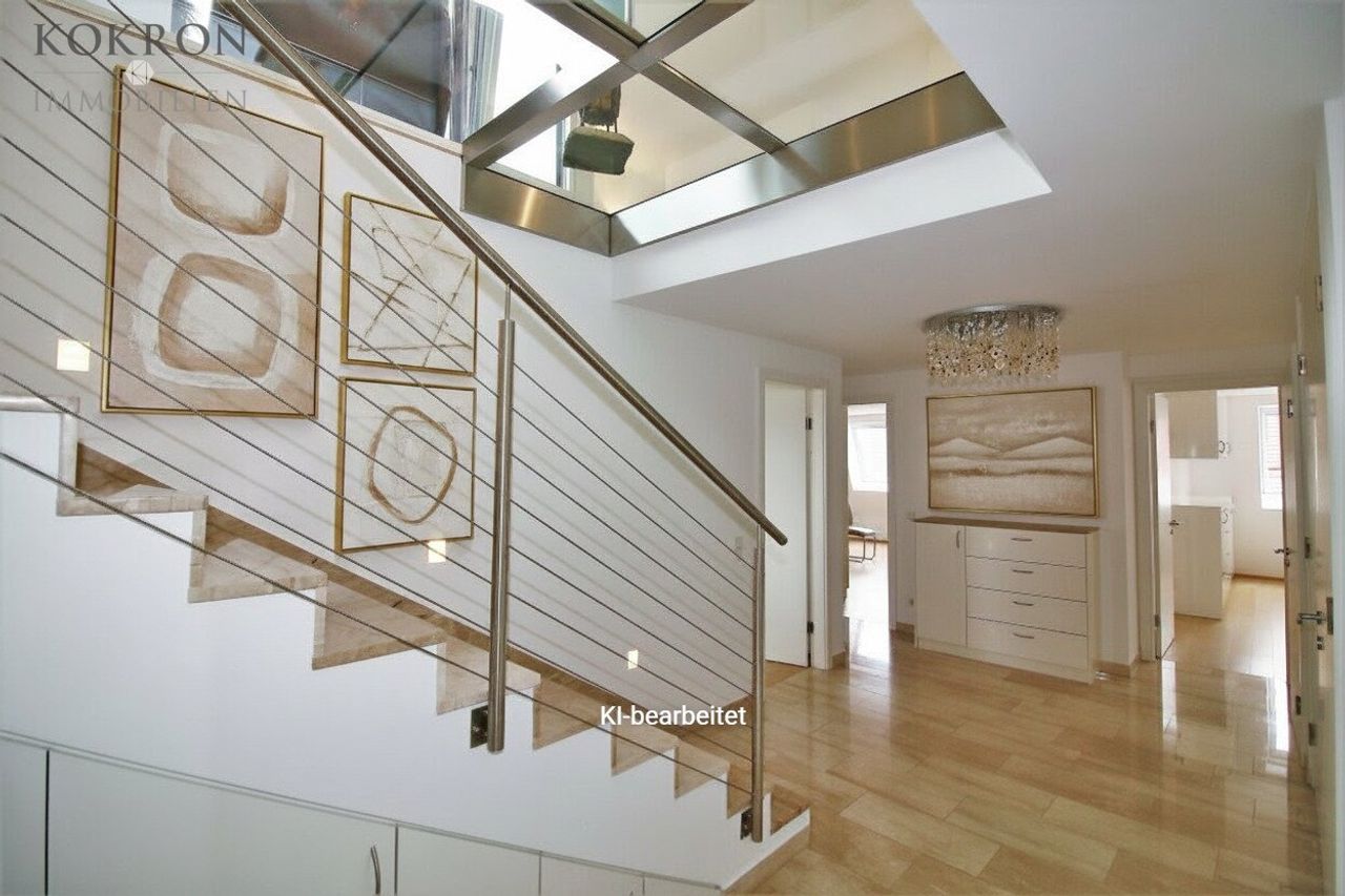 Insgesamt 184m² Wohnfläche mit 3 Schlafzimmern, einem fast 70m2 großen Wohn-Essbereich, 3 WC´s, 1 Duschbad, 1 Bad mit Dusche und Badewanne sowie 3 Terrassen, davon 1 spektakuläre 360-Dachterrasse warten auf Sie.