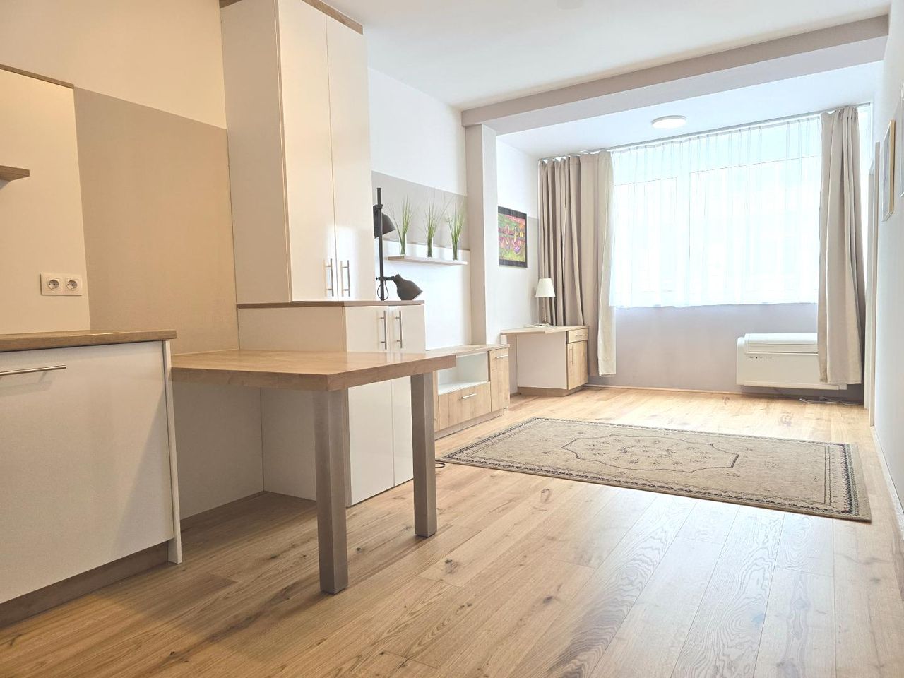 Diese komplett neu überarbeitete Neubauwohnung befindet sich im 1,5 Stockwerk in einer sehr repräsentativen Neubauliegenschaft und besticht durch ihre überaus hochwertige Ausstattung und die hervorragende, zentrumsnahe Lage. Die Wohnung besteht aus einem bestechend großzügigen Wohnzimmer, integriert ist eine moderne, komplett möblierte Marken-Einbauküche - Wohnküche, einem herrlichen Schlafzimmer, einem Badezimmer mit großer Dusche, Waschtisch und Toilette und dem Vorraum mit Garderobenbereich.