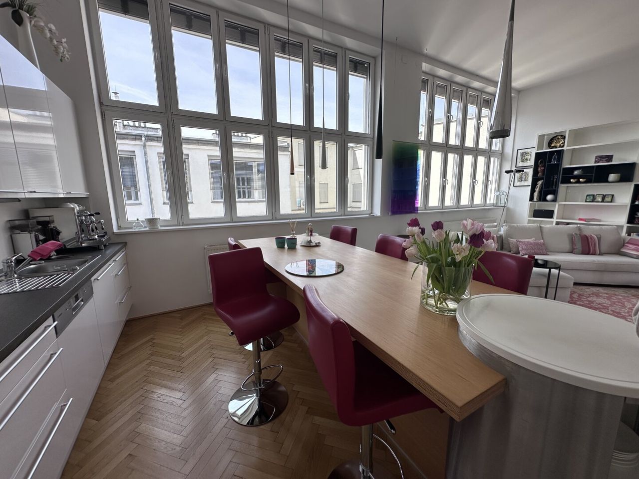 Abgerundet wird dieses Wohnjuwel durch seine außergewöhnliche Helligkeit, die ruhige Lage sowie zahlreiche Fensterflächen, die für ein freundliches, lichtdurchflutetes Ambiente sorgen. Für zusätzlichen Komfort sorgen Klimageräte im Wohn- und Schlafzimmer.