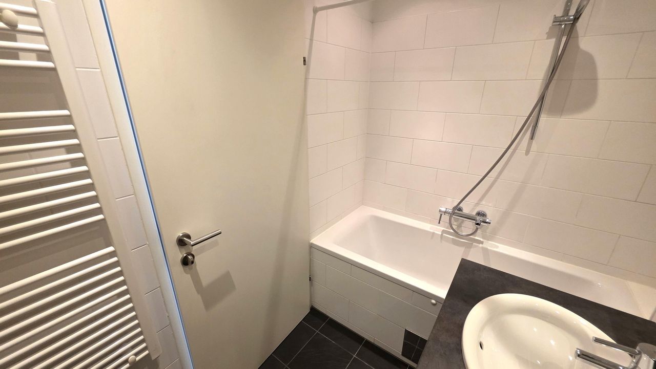 • Badezimmer mit Badewanne und Waschmaschinenanschluss