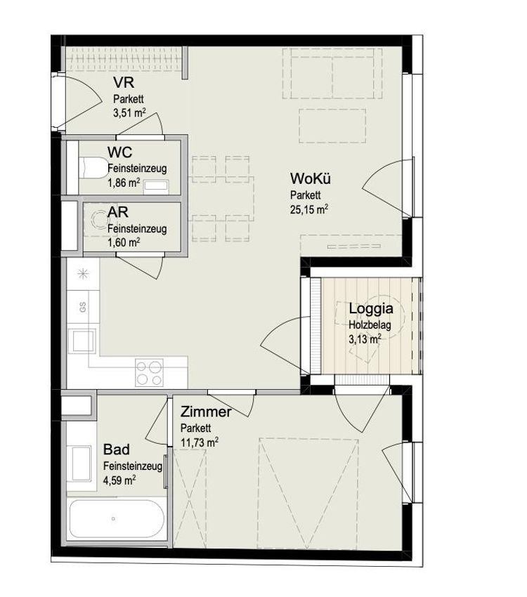 2 Zimmer - Neubauwohnung mit 51,57m² Wohnfläche, davon 3,13m² Loggia!