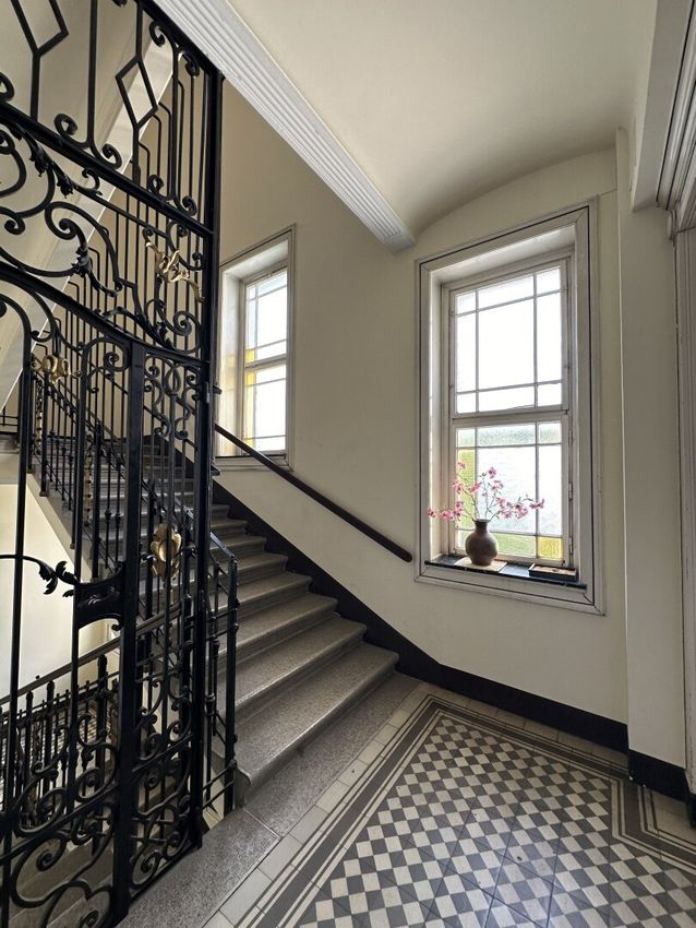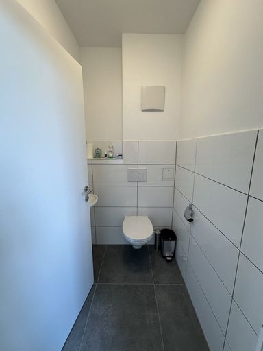 Beim Betreten werden Sie von einem einladenden Flur begrüßt, der rechterhand zu einem separaten WC mit Handwaschbecken führt. Nur wenige Schritte weiter, ebenfalls auf der rechten Seite, befindet sich das geräumige Badezimmer mit einer großzügigen Badewanne, einer Dusche, einem stilvollen Waschbecken, einem weiteren WC und einem praktischen Waschmaschinenanschluss.