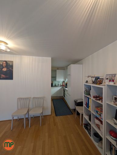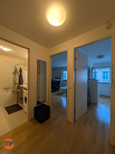 Dank der großzügigen Fensterflächen wird die Wohnung Tag für Tag von natürlichem Licht durchflutet und schafft eine besonders angenehme Wohnatmosphäre. Der helle Parkettboden verstärkt diesen freundlichen, einladenden Charakter zusätzlich. Sämtliche Räume sind separat vom Vorzimmer aus begehbar und überzeugen durch eine durchdachte, praktische Raumaufteilung. Die voll ausgestattete Küche ist in einer geräumigen Nische im Wohnbereich integriert und ermöglicht trotz offener Gestaltung eine klare optische Trennung zwischen Kochen und Wohnen. Das modern gestaltete Badezimmer mit großflächigem Spiegel und stilvollen Holzelementen rundet das Gesamtbild harmonisch ab. Ein eigenes Kellerabteil bietet zusätzlichen Stauraum und sorgt für weiteren Komfort.
