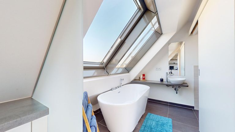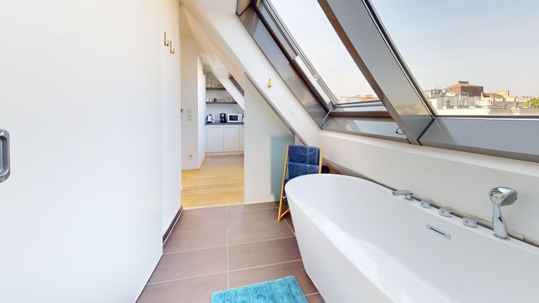 - Dachfenster mit Außen Rollo ausgestattet (für Verdunklung) und Terrasse mit elektrische Raffstore