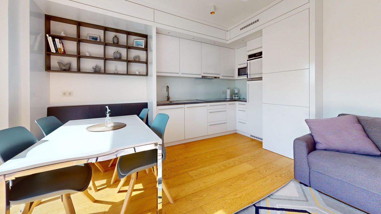 - Voll Ausgestatte Küche inkl. Kühlschrank, Gefrierschrank, Induktionsceranfeld, Dunstabzug, Backrohr, Mikrowelle und Geschirrspüler