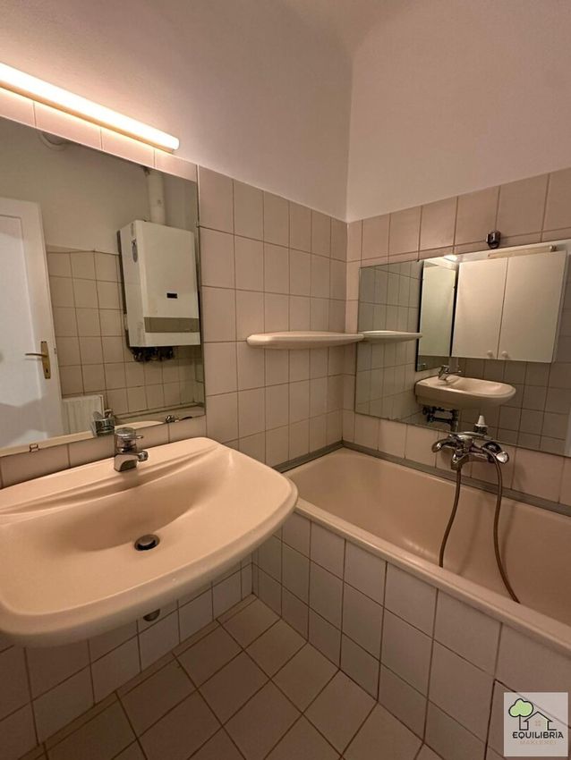 Wenn Sie die Wohnung betreten, befindet sich linker Hand das WC und anschließend das kleine Bad. Weiters gibt es eine kleine Küche und zwei getrennt begehbare Zimmer. Eines der beiden Zimmer ist mit französischen Fenstern ausgestattet, was Charme hat und viel Licht bedeutet!