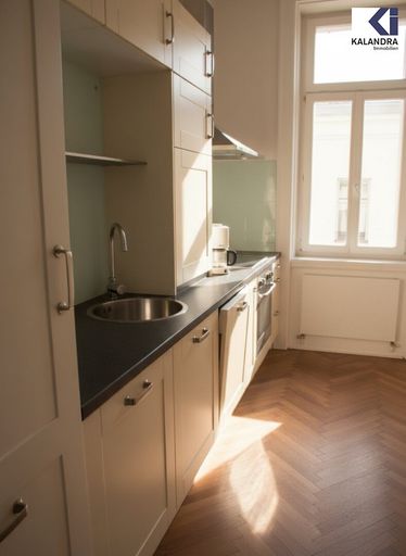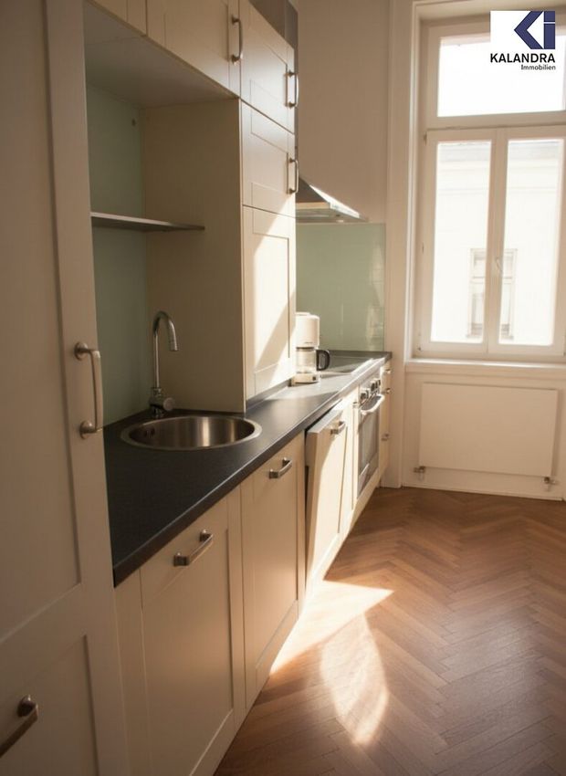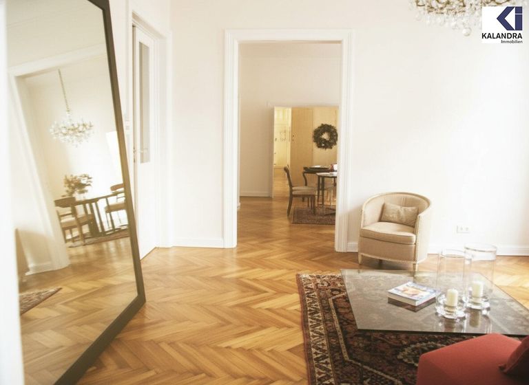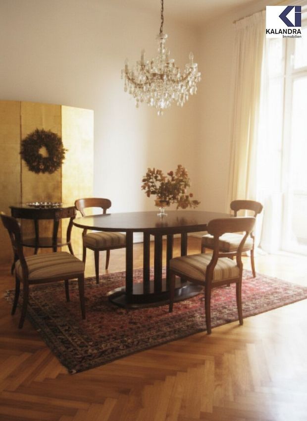 TOP-MÖBLIERTE ALTBAUWOHNUNG Diese repräsentative Stilwohnung wurde soeben komplett saniert und liegt im 1.Liftstock ( mit Mezzanin) eines sehr schönen klassischen Altbaues mit repräsentativen Entree und gliedert sich wie folgt: Raumaufteilung: Großes zentrales Vorzimmer, 1 großer Salon, 1 Speisesalon nahe der Küche mit offenem Kamin und kleinem Balkon, 2 große Schlafzimer, 1 großes Wannenbad, Komplettküche, Extra-WC. Die Zimmer sind bis auf ein Schlafzimmer in eine ruhige Gasse des Servitenviertels orientiert. Ausstattung: schöner, neu versiegelter Parkettboden, Flügeltüren, Stuckdecken, Gas-Etagenheizung, weiß verflieste Nassräume Das Objekt ist komplett mit schönen, neuwertigen italienischen Stilmöbeln eingerichtet: im Wohnzimmer befindet sich eine Sitzgruppe sowie ein großer Wandspiegel,...