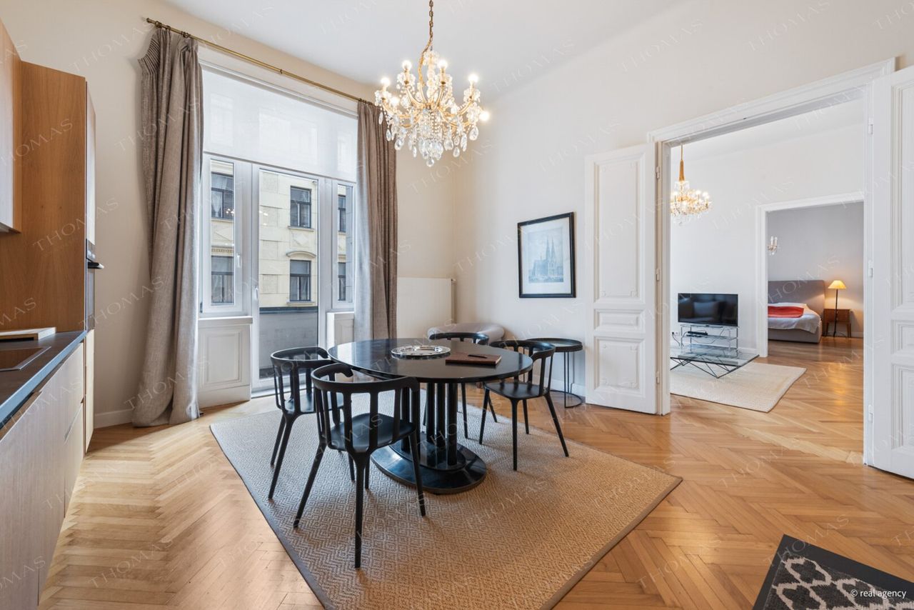 For rent is a high-quality, fully furnished apartment located in a very well-maintained period building with elevator and private basement storage unit. The beautiful historic building is situated in a prime location in the sought-after Servitenviertel in Vienna’s 9th district.